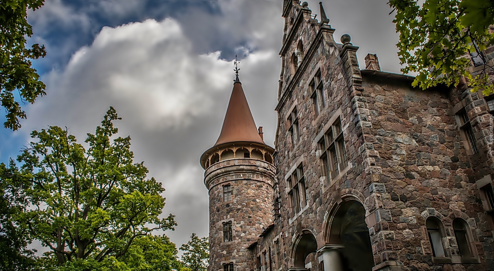 Edytor tapety: Zamek, Drzewa, Niebo, Chmury