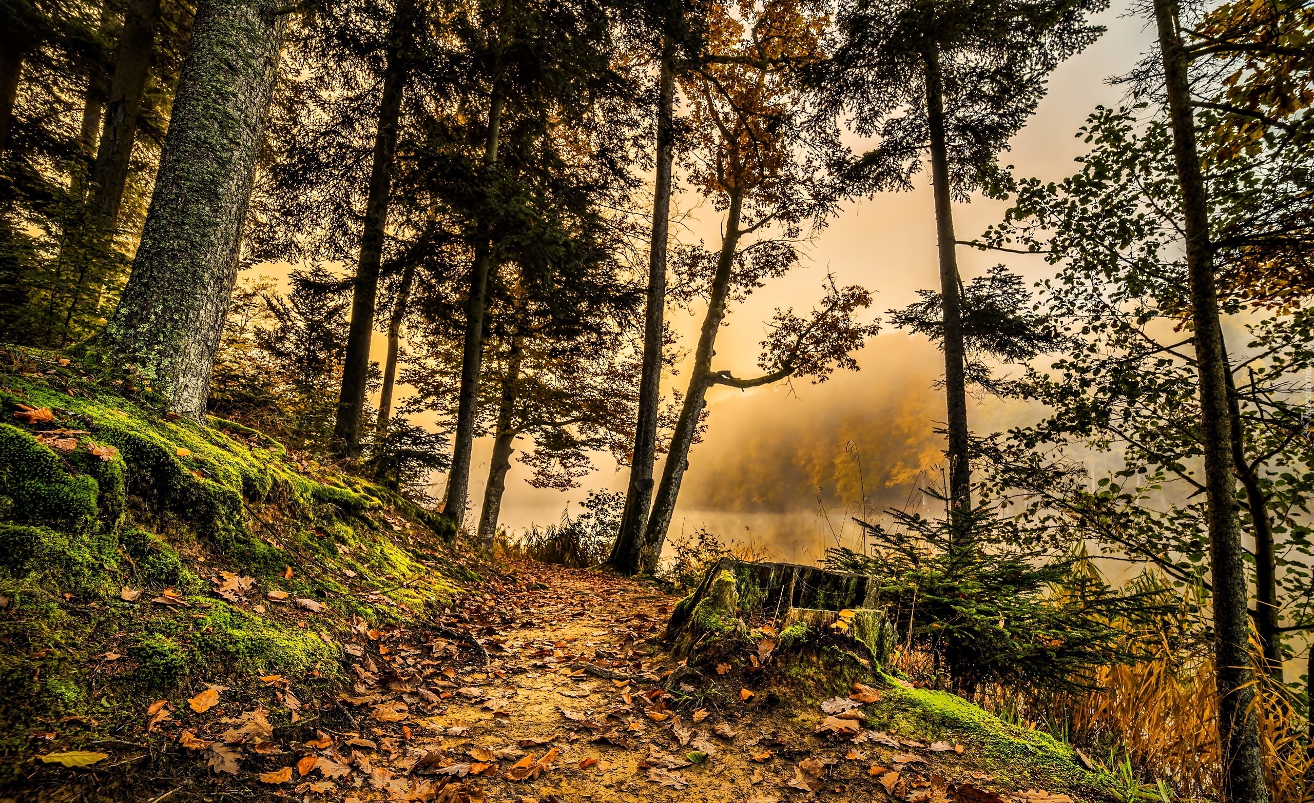 Edytor tapety: Las, Droga, Rzeka, Mgła