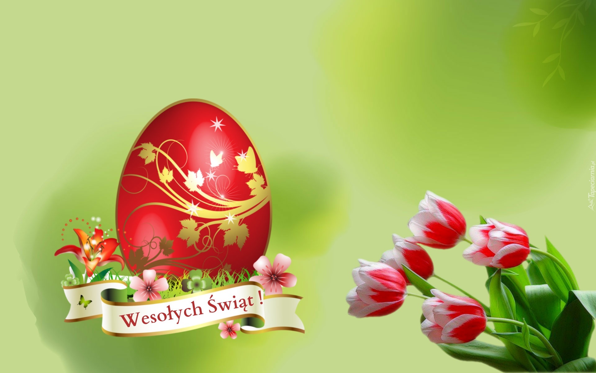 Edytor tapety: Wielkanoc, Pisanka, Kwiaty, Napis