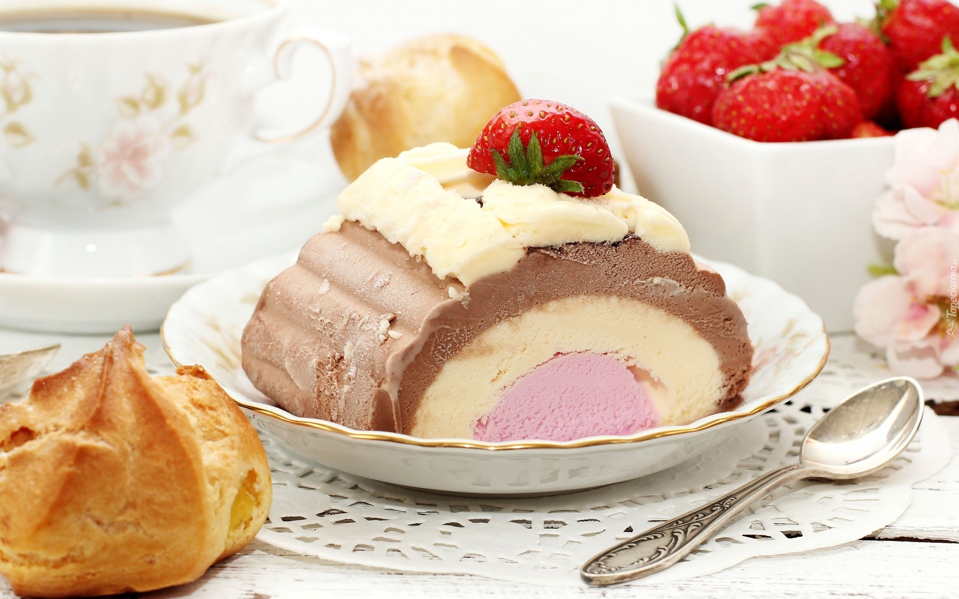 Edytor tapety: Lody, Truskawka, Talerz, Łyżeczka, Deser