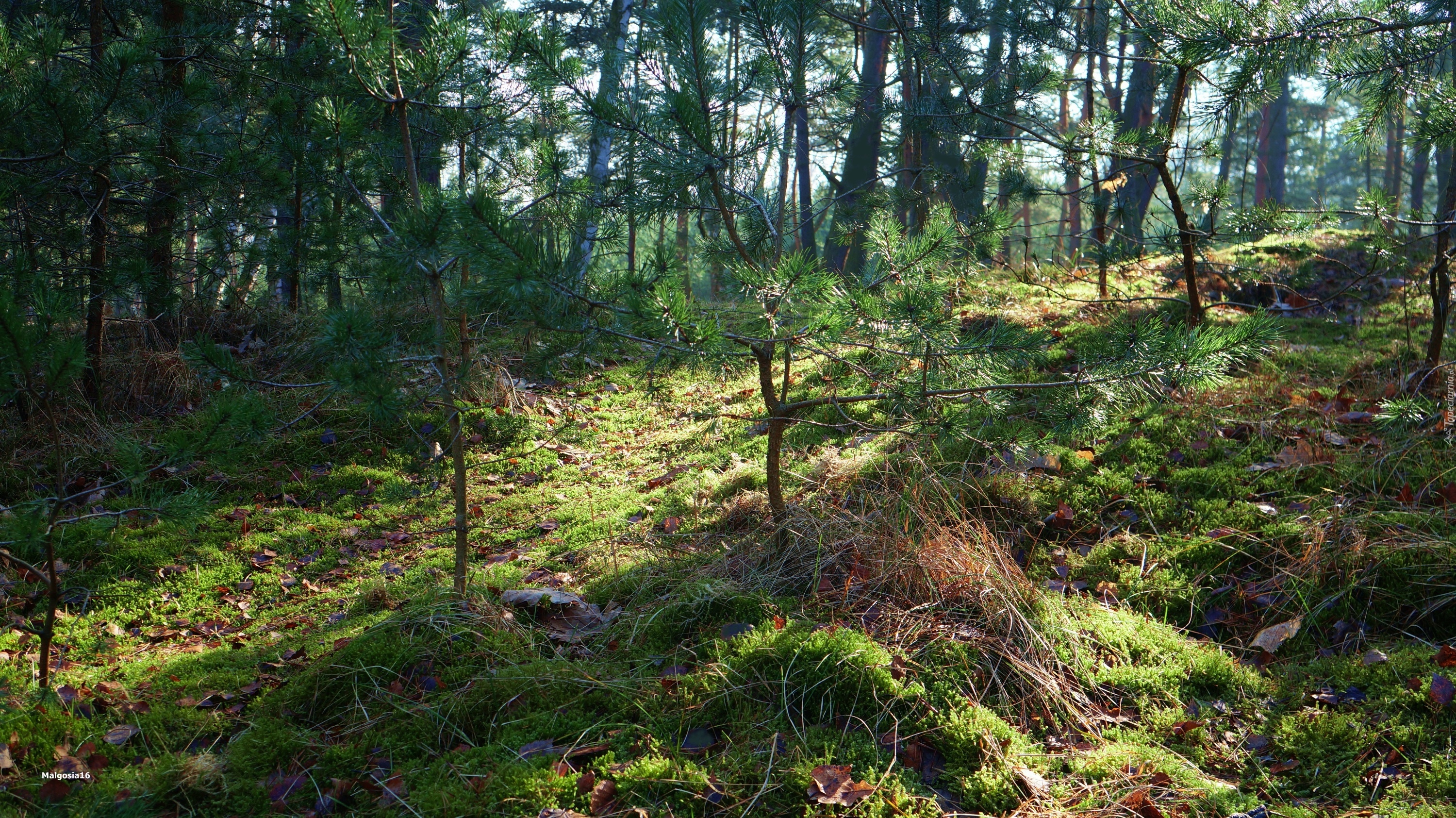 Edytor tapety: Las, Drzewa, Mech, Przebijające Światło