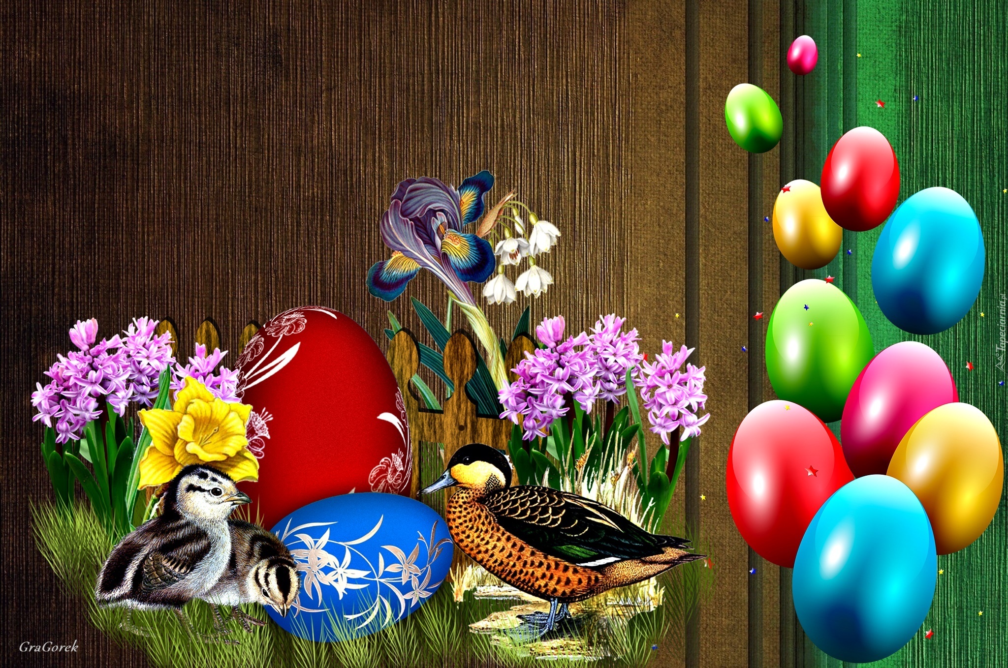Edytor tapety: Wielkanoc, Kaczuszki, Kolorowe Pisanki