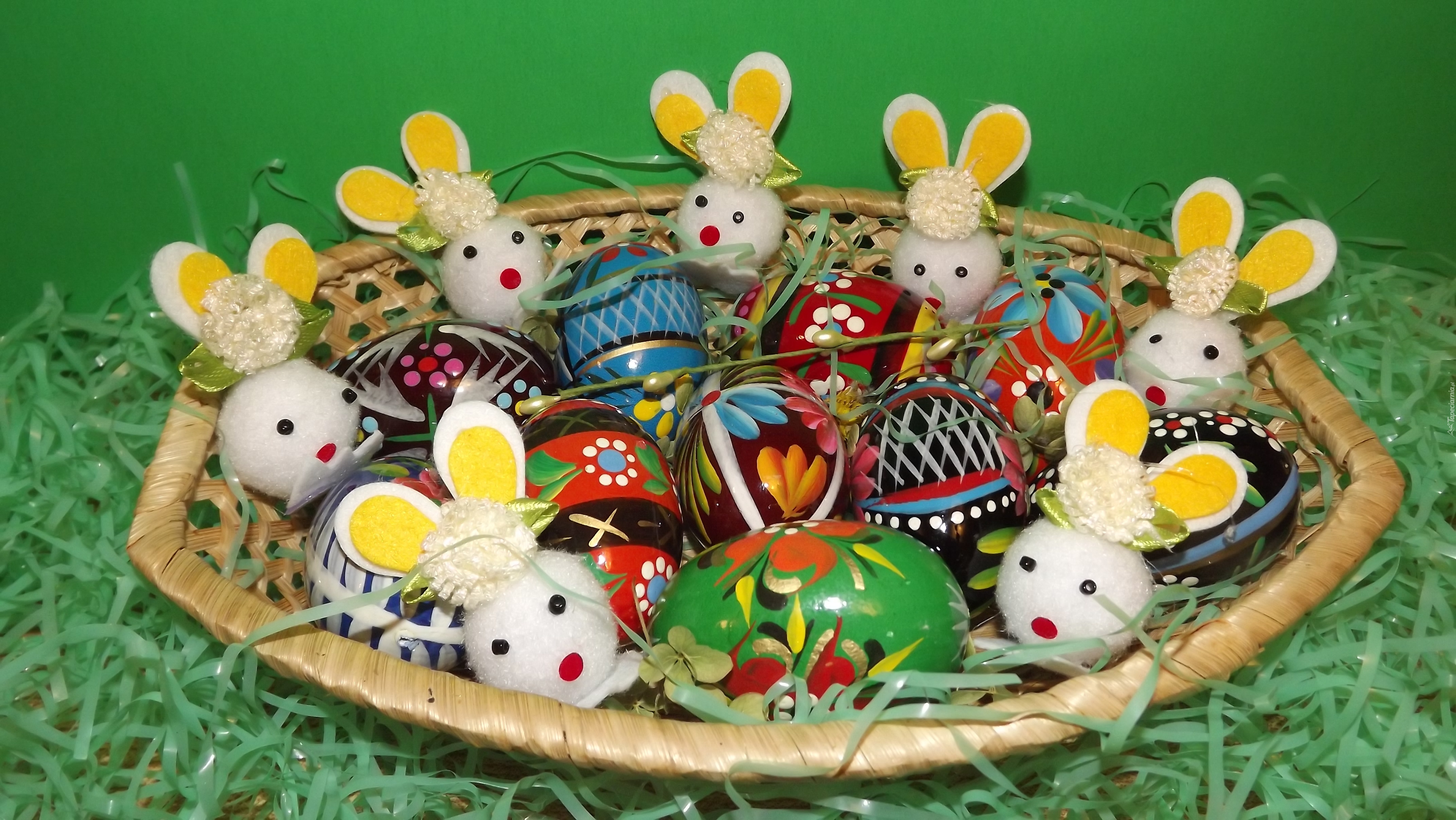 Edytor tapety: Wielkanoc, Koszyk, Pisanki, Zajączki