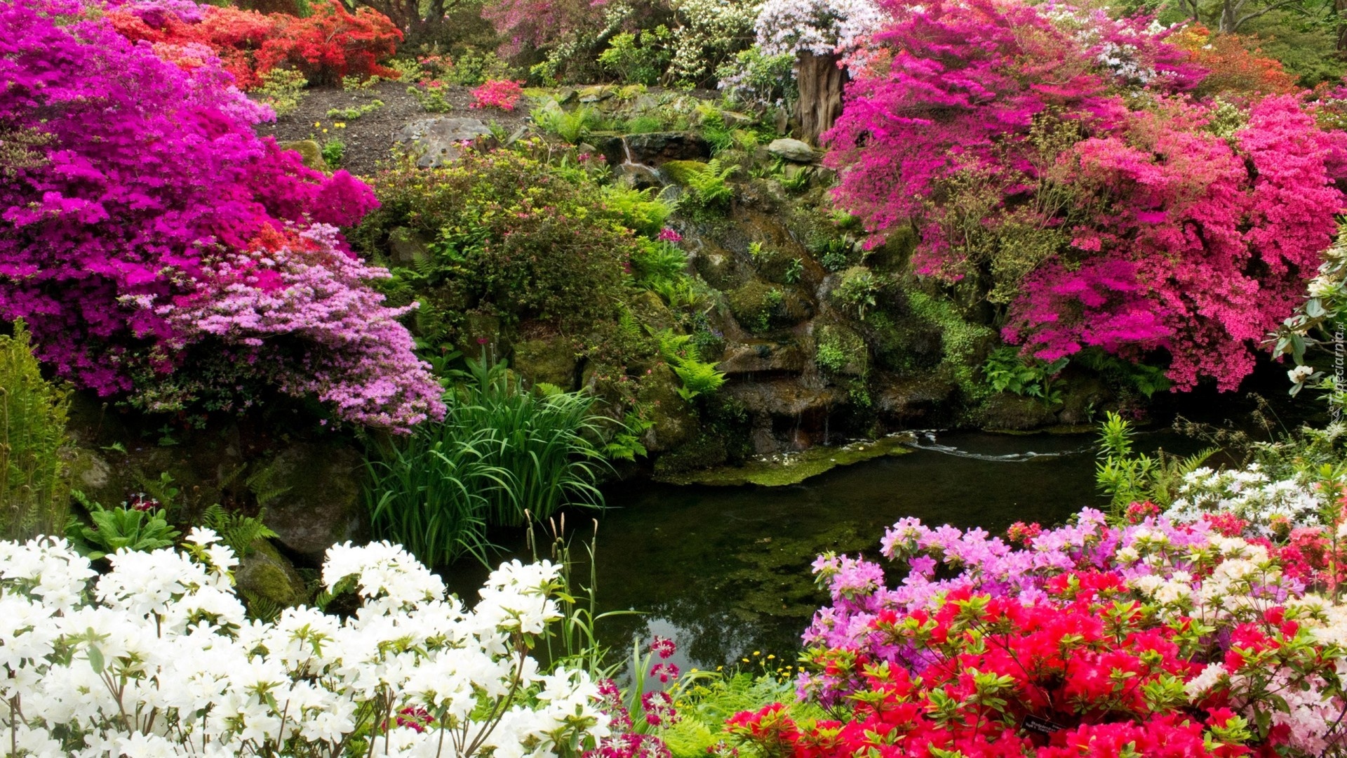 Edytor tapety: Anglia, Ogród, Park, Rzeka, Azalie