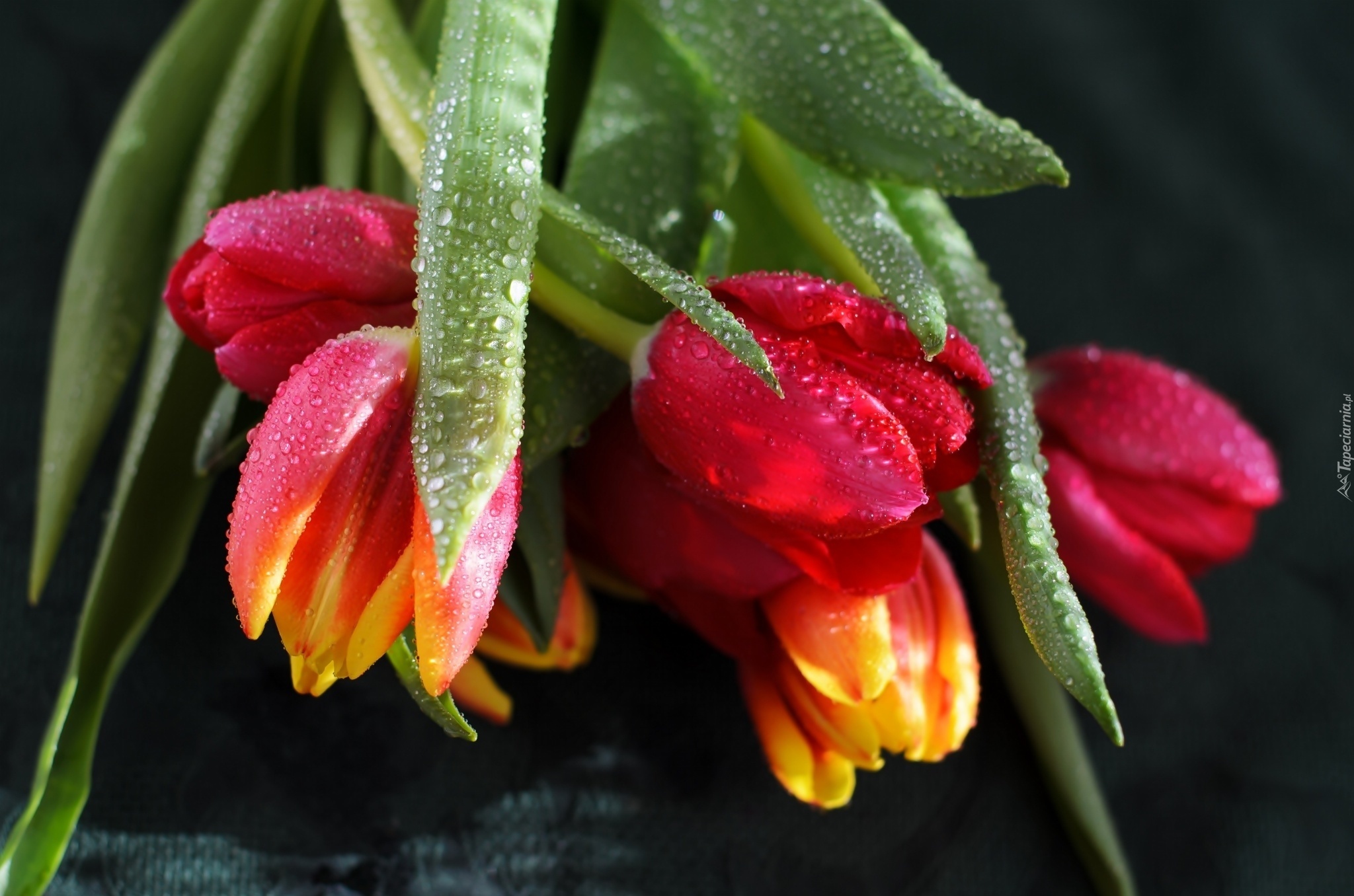 Edytor tapety: Bukiet, Tulipanów, Krople, Rosy