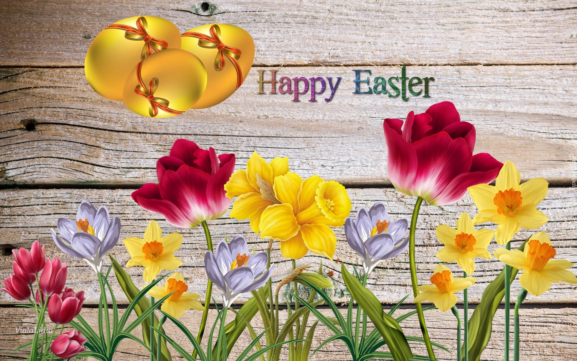 Edytor tapety: Grafika, Wielkanoc, Kwiaty, Krokusy, Tulipany, Żonkile