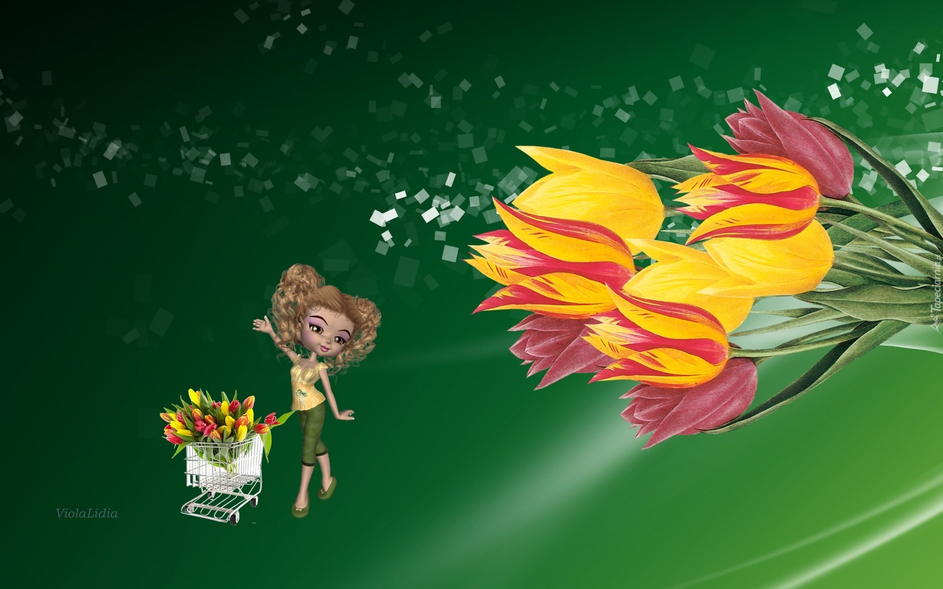 Edytor tapety: Grafika, Tulipany, Laleczka