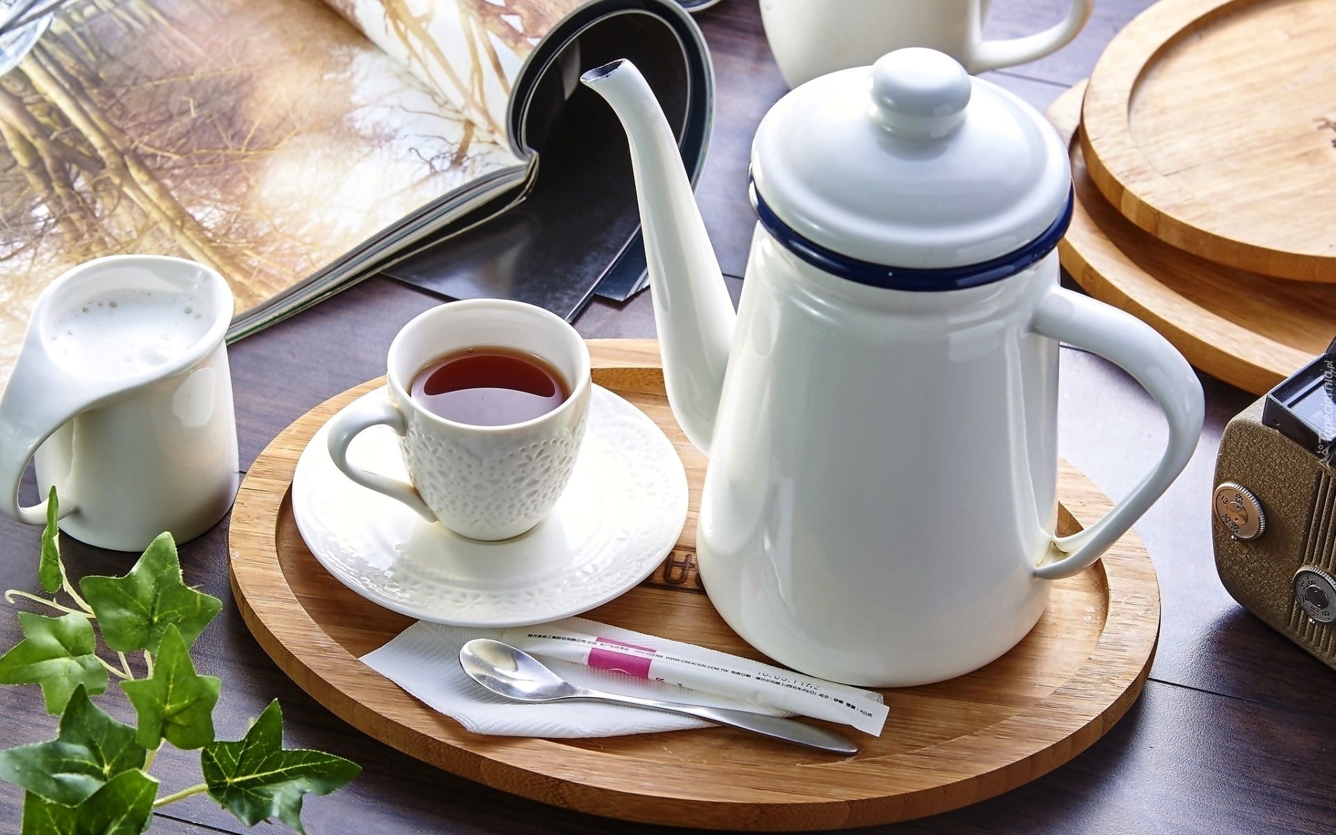 Edytor tapety: Herbata, Filiżanka, Mleko, Dzbanek, Dekoracja