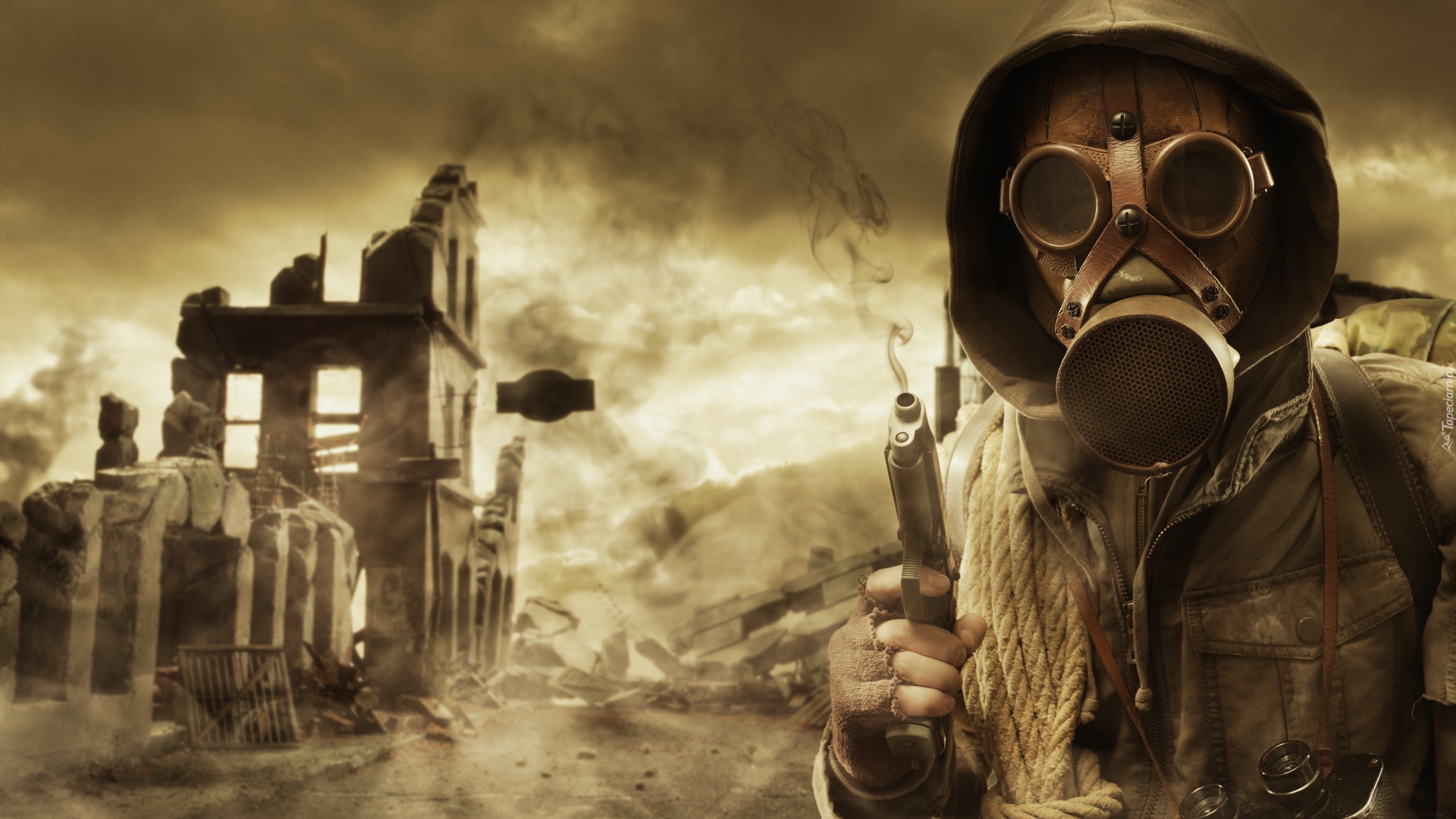 Edytor tapety: Wojna, Żołnierz, Maska, Gazowa, Lina, Pistolet, Lornetka