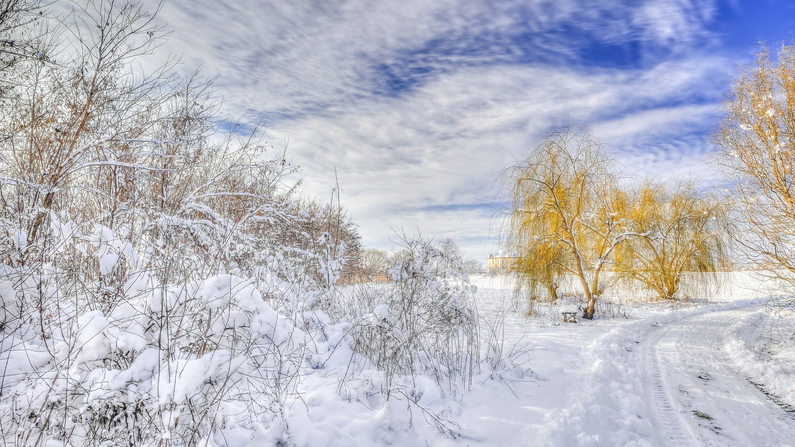 Edytor tapety: Zima, Droga, Śnieg, Drzewa, Krzewy