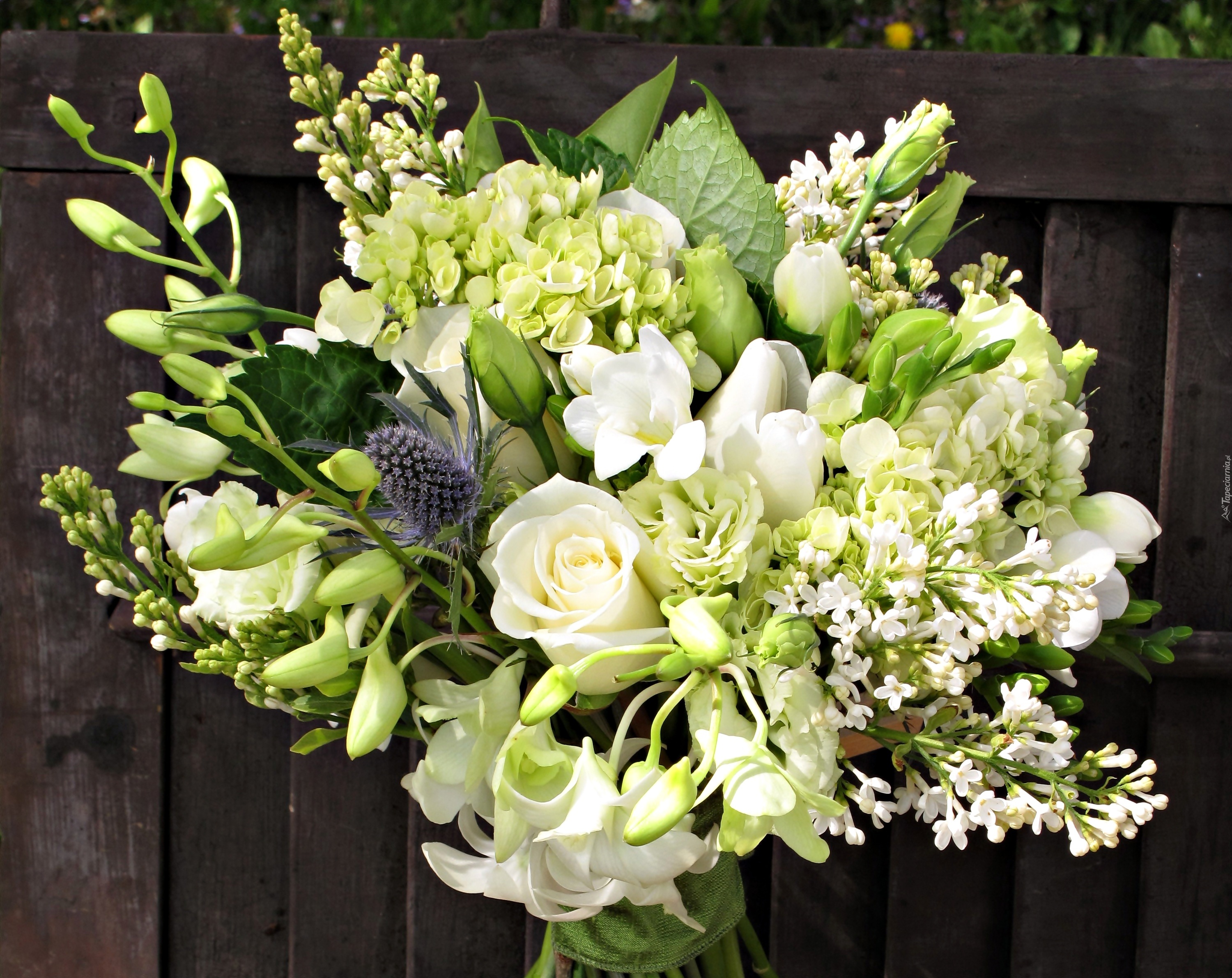 Edytor tapety: Bukiet, Białe, Róże, Frezje
