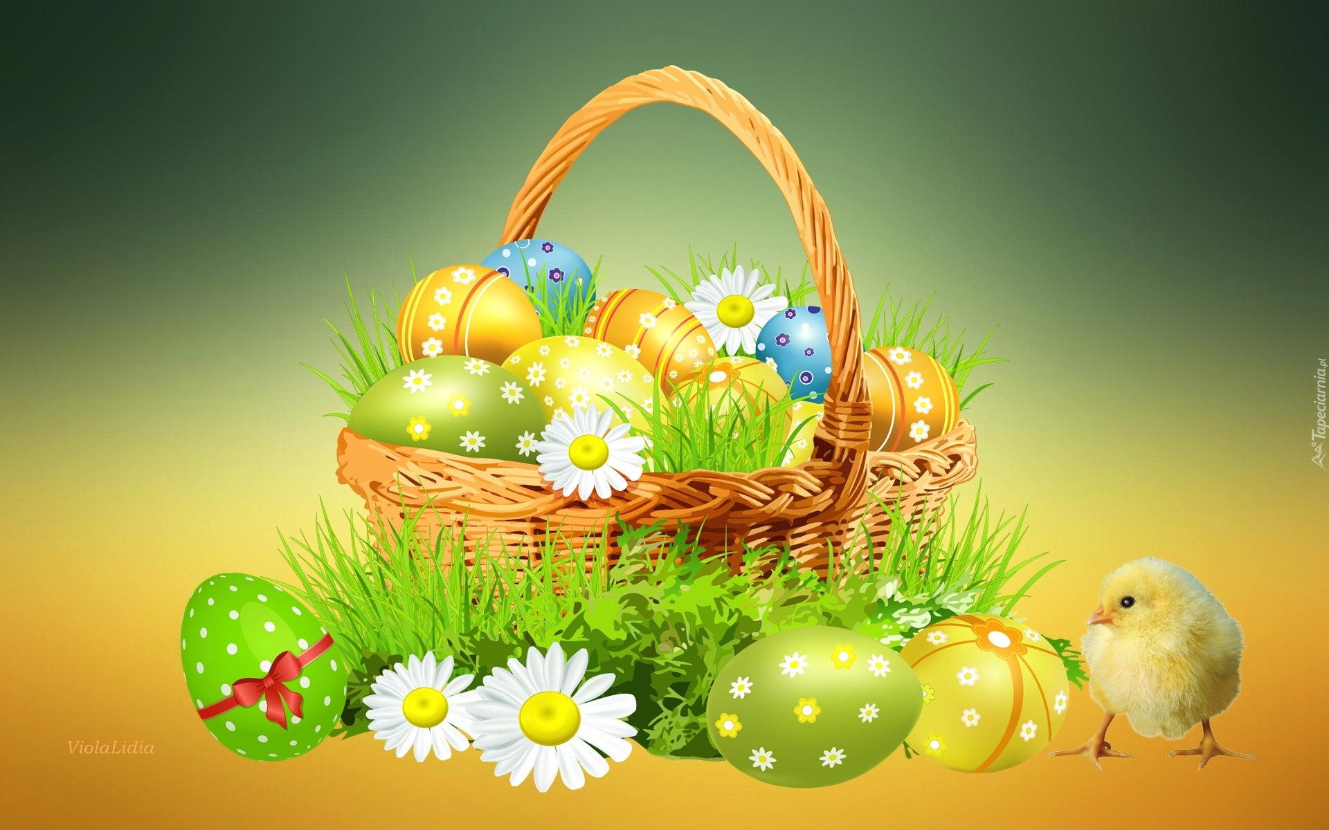 Edytor tapety: Grafika, Wielkanoc, Koszyczek, Pisanki