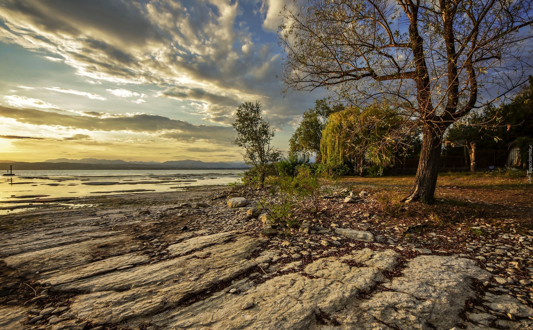 Edytor tapety: Wybrzeże, Kamienie, Drzewa, Sirmione, Lombardia