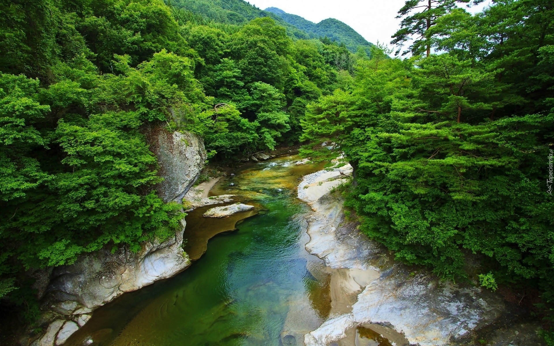 Edytor tapety: Rzeka, Góry, Lasy, Roślinność, Wiosna