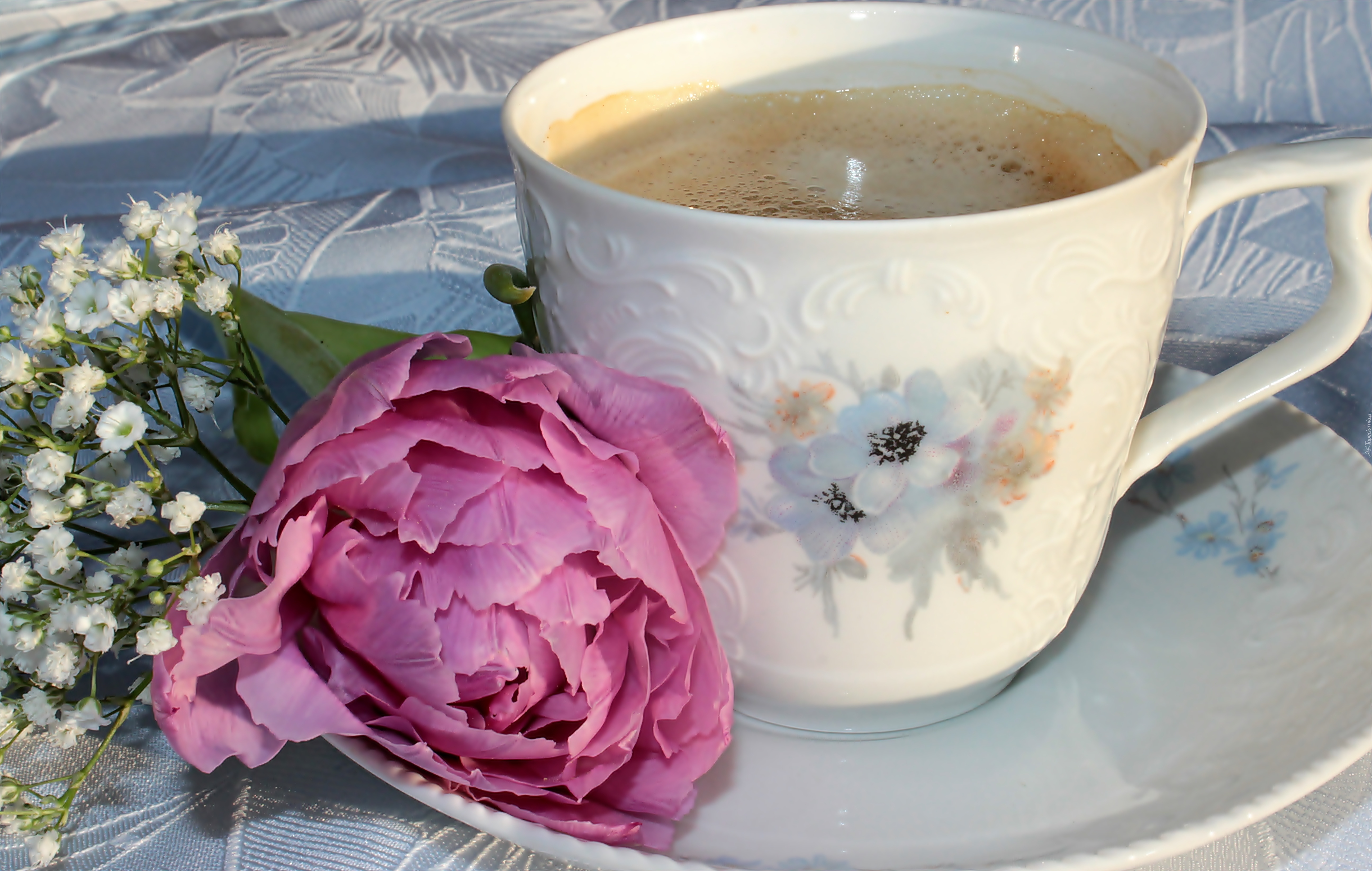 Edytor tapety: Filiżanka, Kawy, Różowy, Pełny, Tulipan