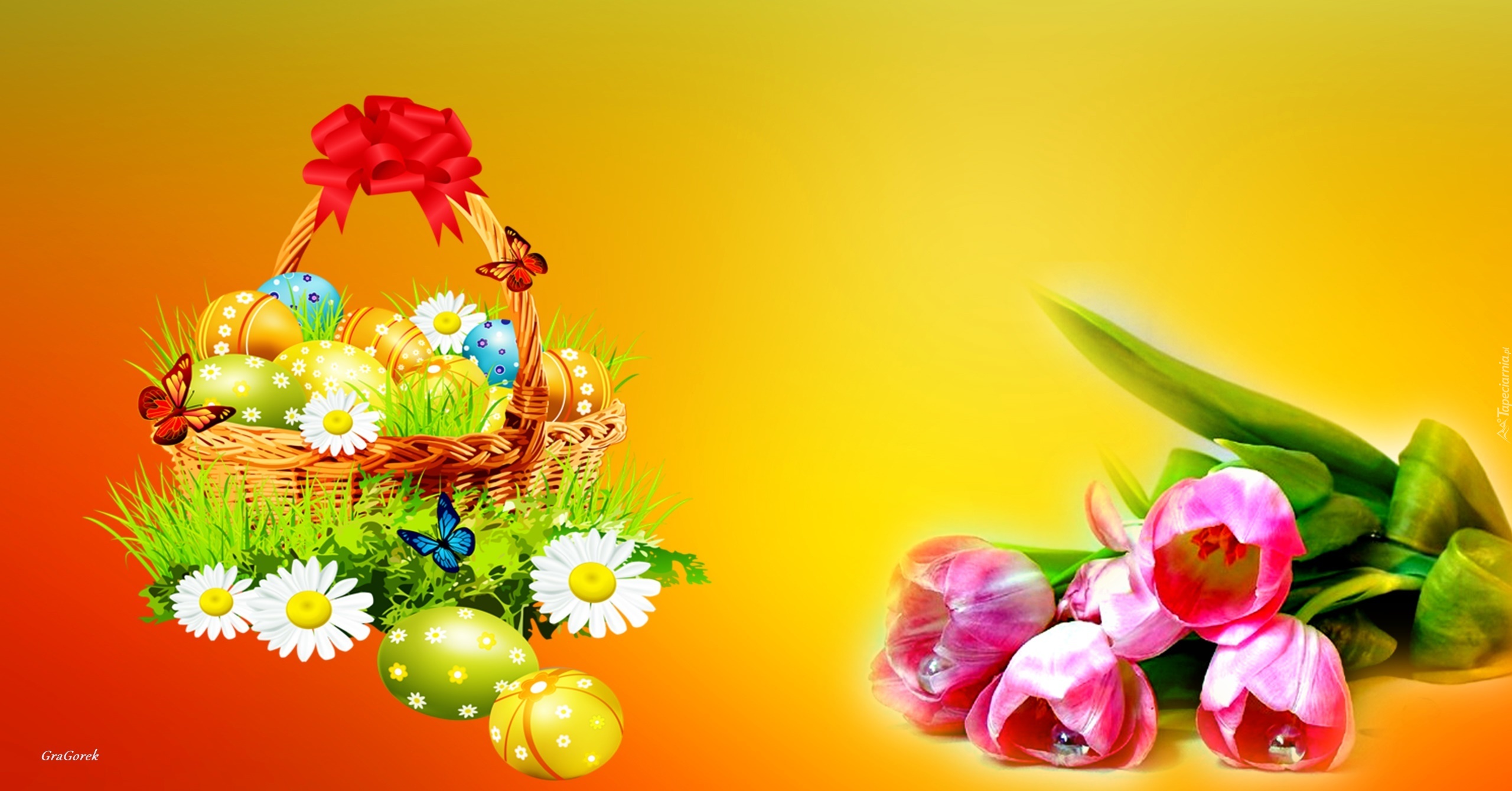 Edytor tapety: Wielkanoc, Kwiaty, Koszyk, Pisanki