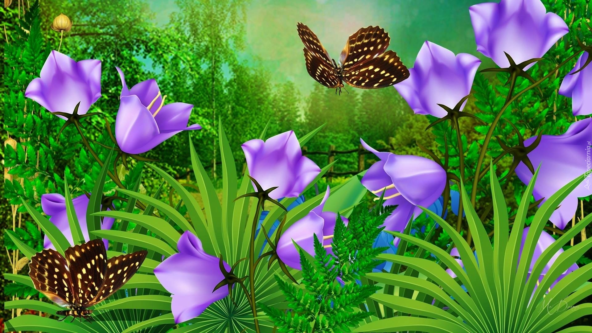 Edytor tapety: Kwiaty, Motylki, Trawa