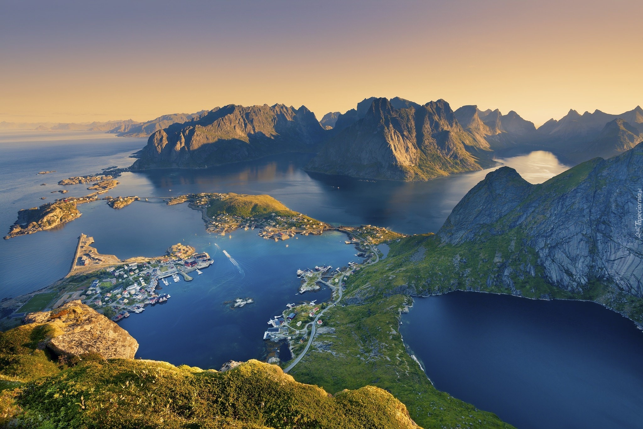 Edytor tapety: Norwegia, Lofoty, Z lotu ptaka, Morze, Góry