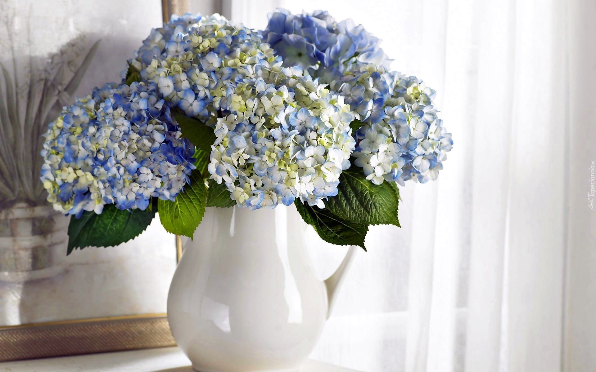 Edytor tapety: Bukiet, Hortensji, Wazon