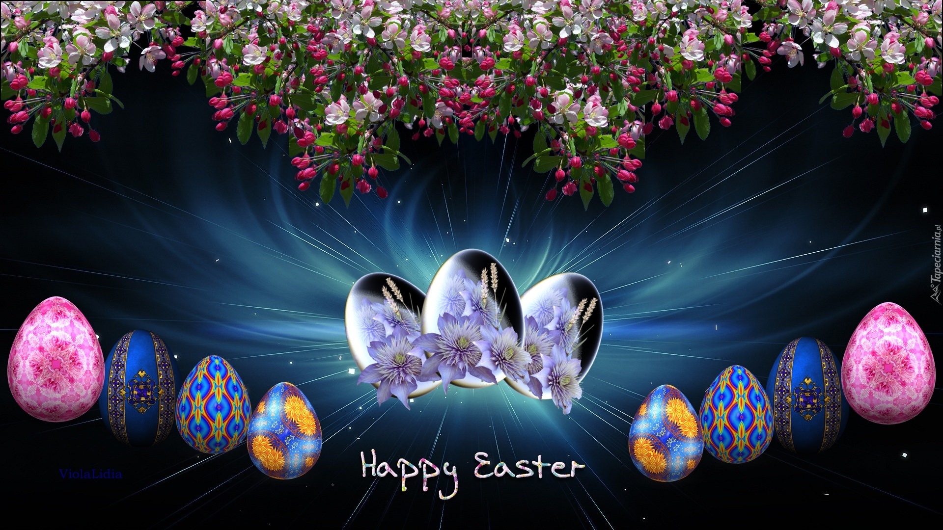 Edytor tapety: Grafika, Wielkanoc, Kwiaty, Pisanki