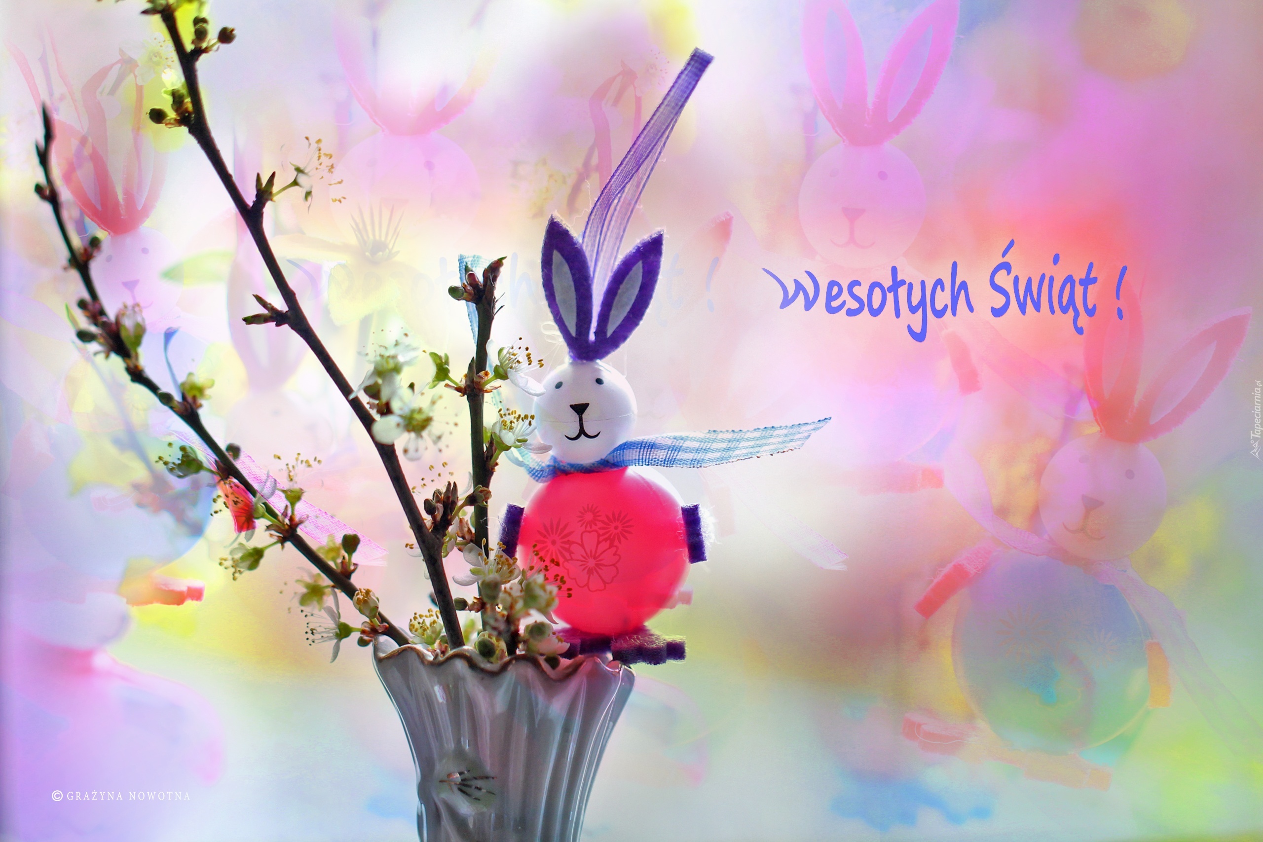 Edytor tapety: Zajączek, Kwiaty, Święta, Wielkanoc