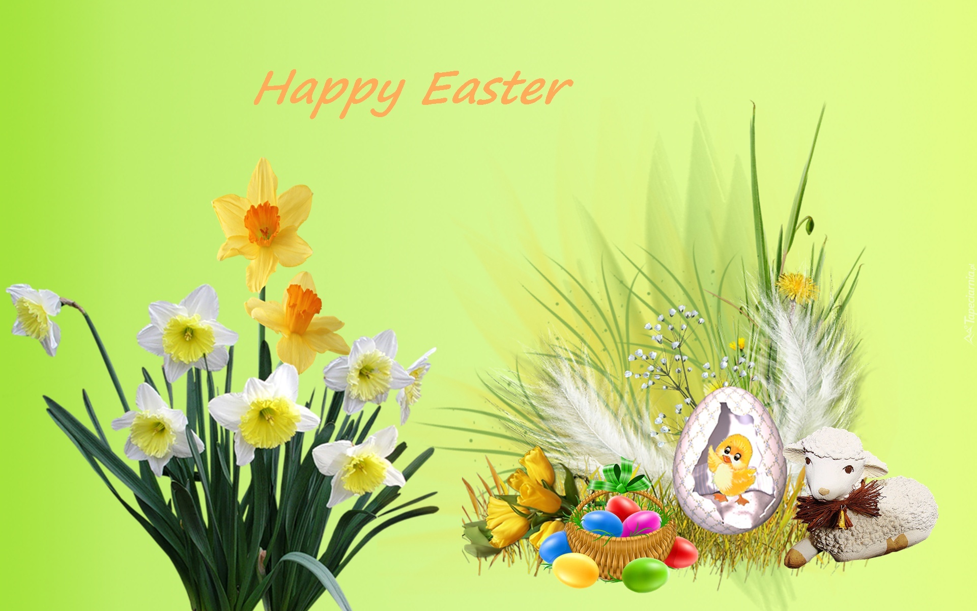 Edytor tapety: Wielkanoc, Pisanki, Baranek, Żonkile