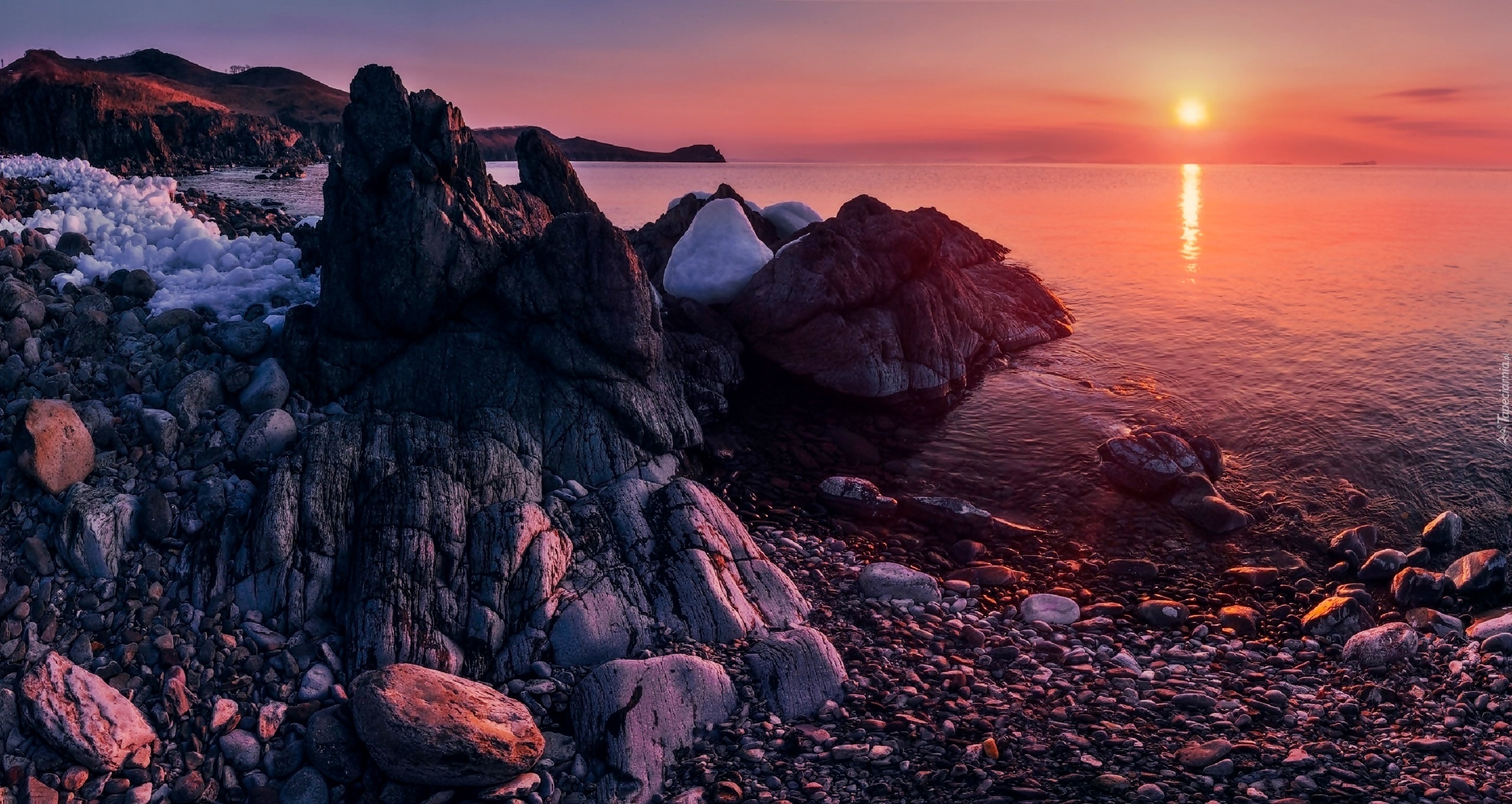 Edytor tapety: Morze, Zachód, Słońca, Kamienie