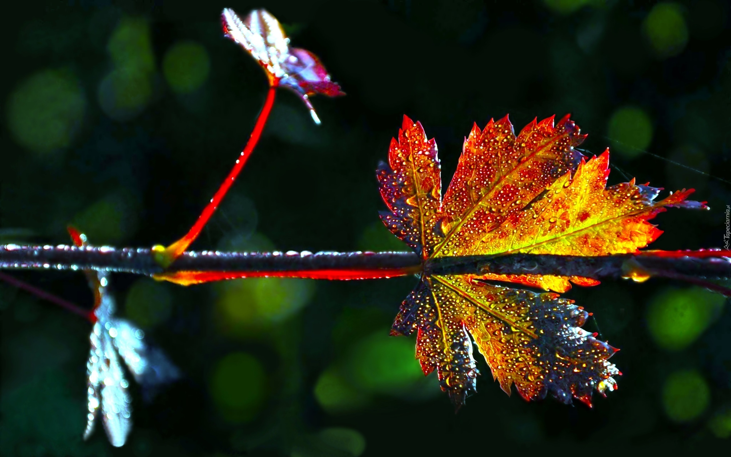 Edytor tapety: Makro, Jesienny, Liść, Krople