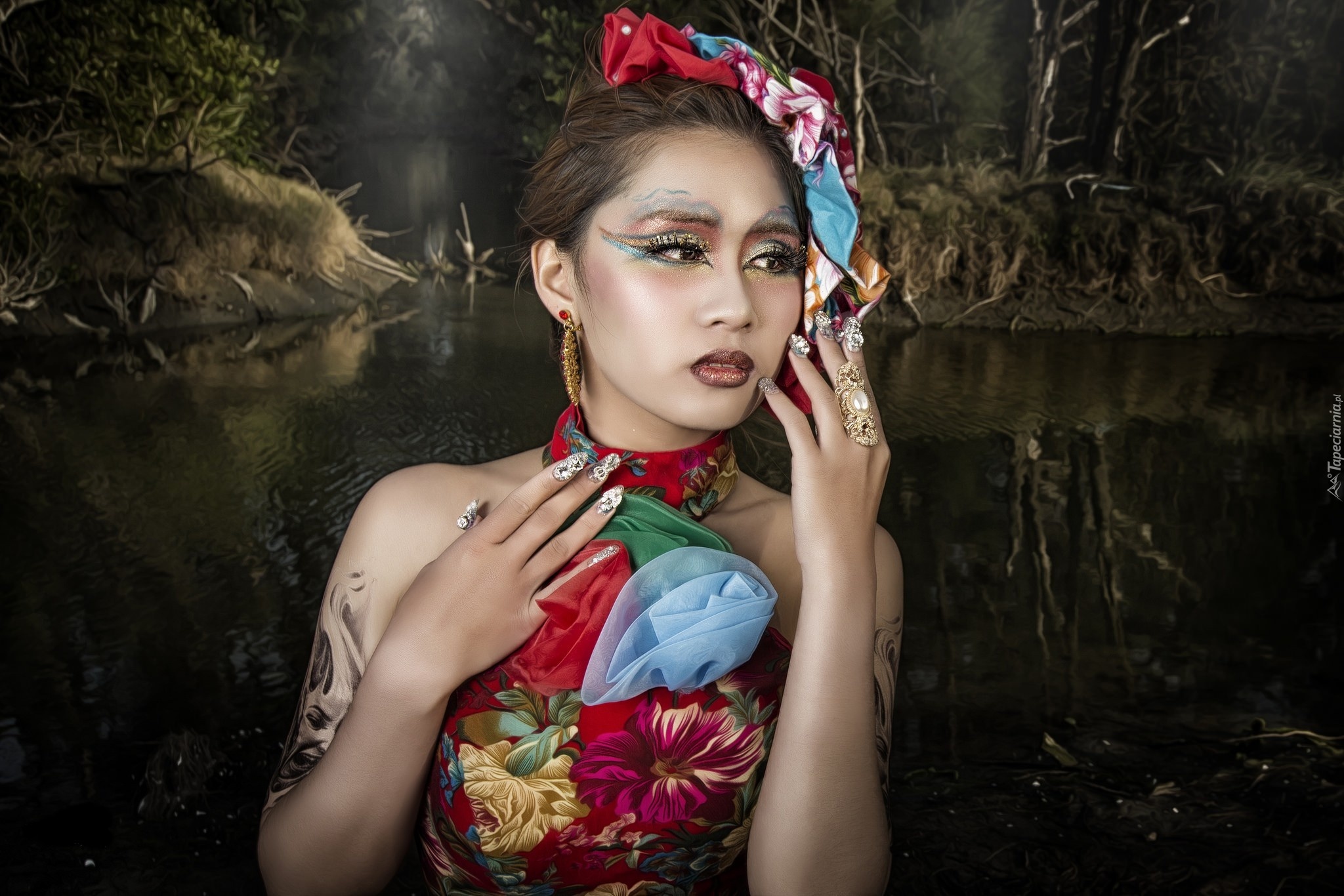 Edytor tapety: Kobieta, Azjatka, Makijaż, Biżuteria, Tatuaże
