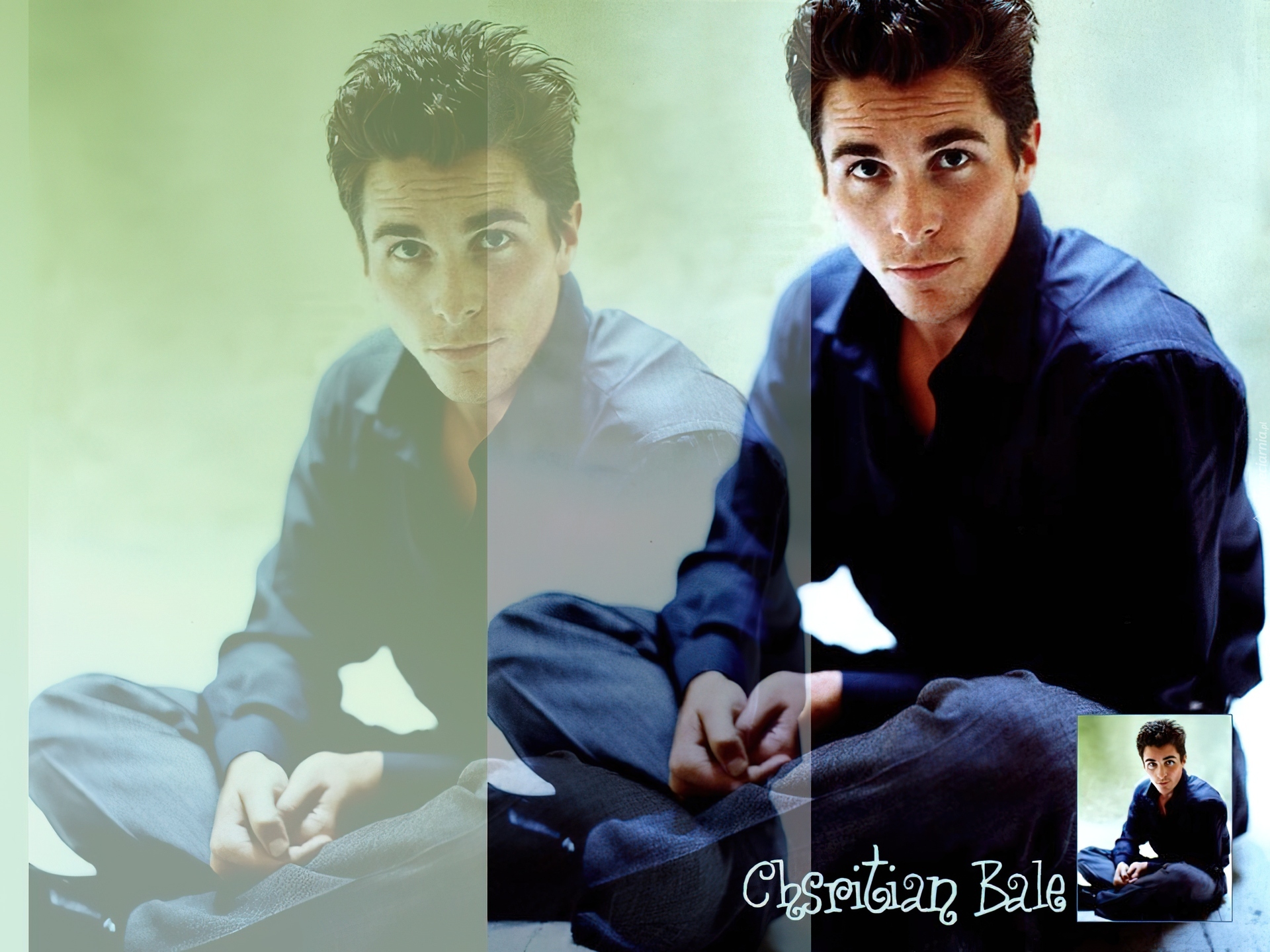 Edytor tapety: Christian Bale, granatowa koszula