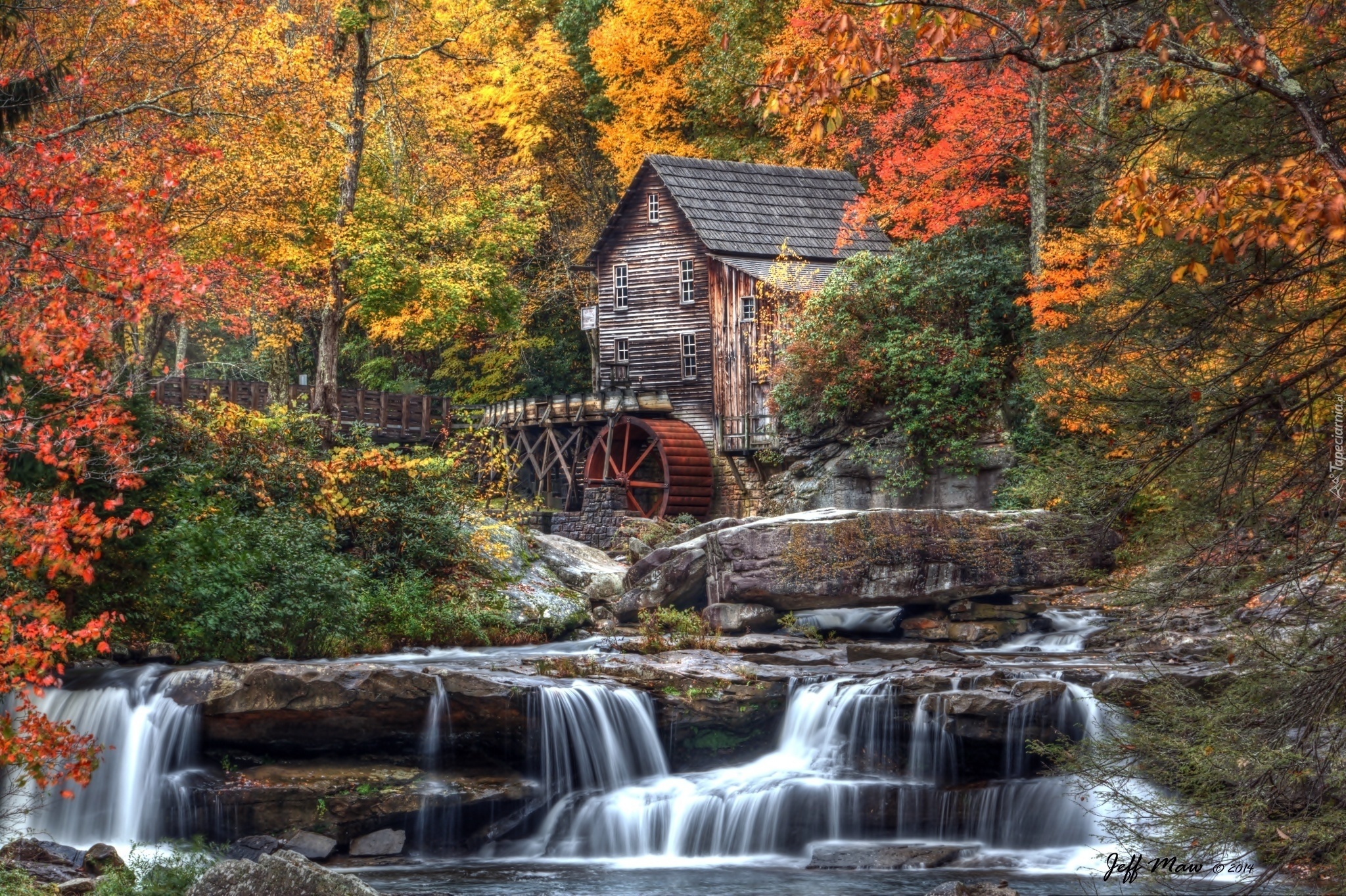 Edytor tapety: Młyn, Wodny, Jesień, Las, Wodospad