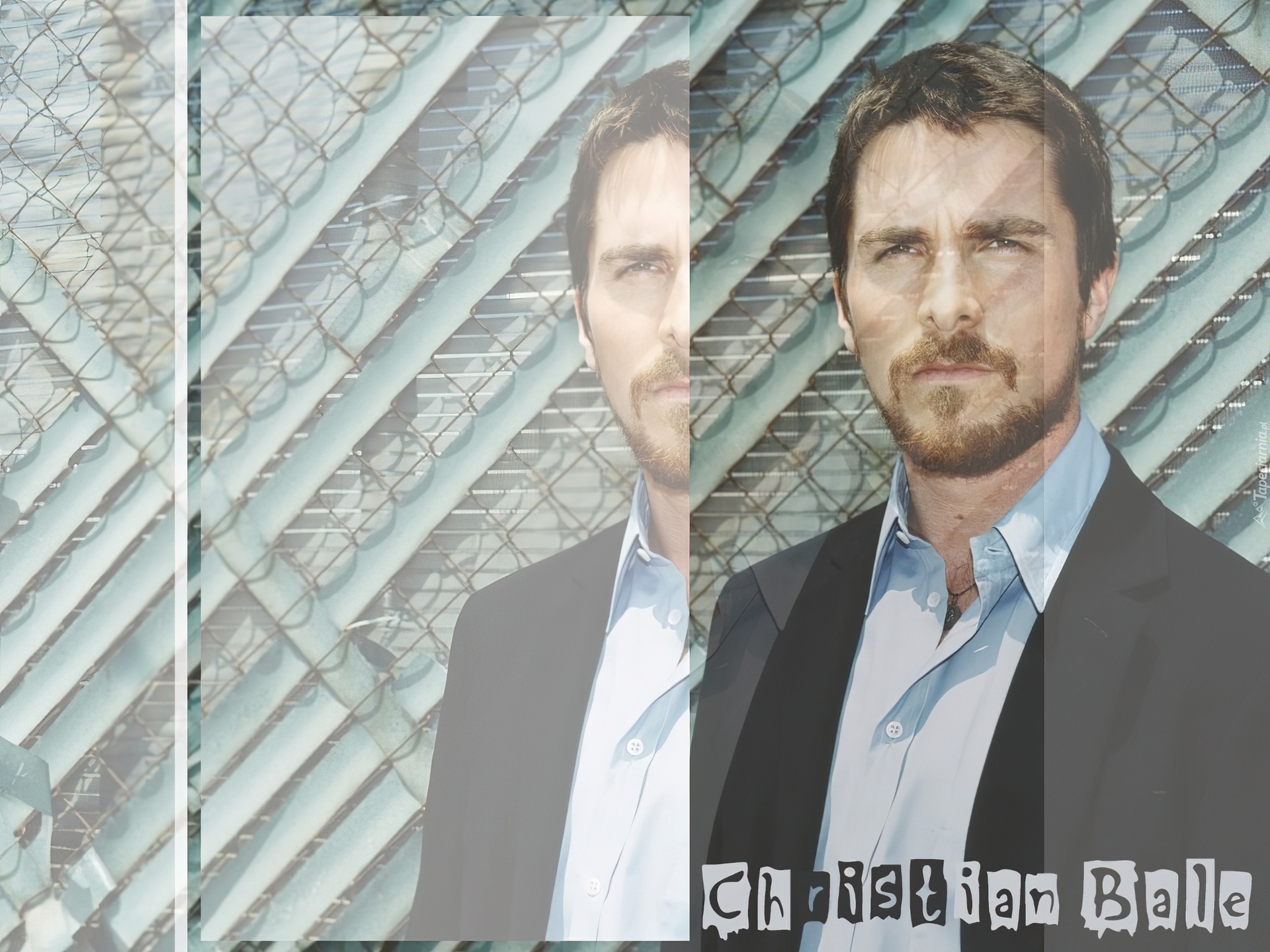 Edytor tapety: Christian Bale,czarna marynarka, niebieska koszula