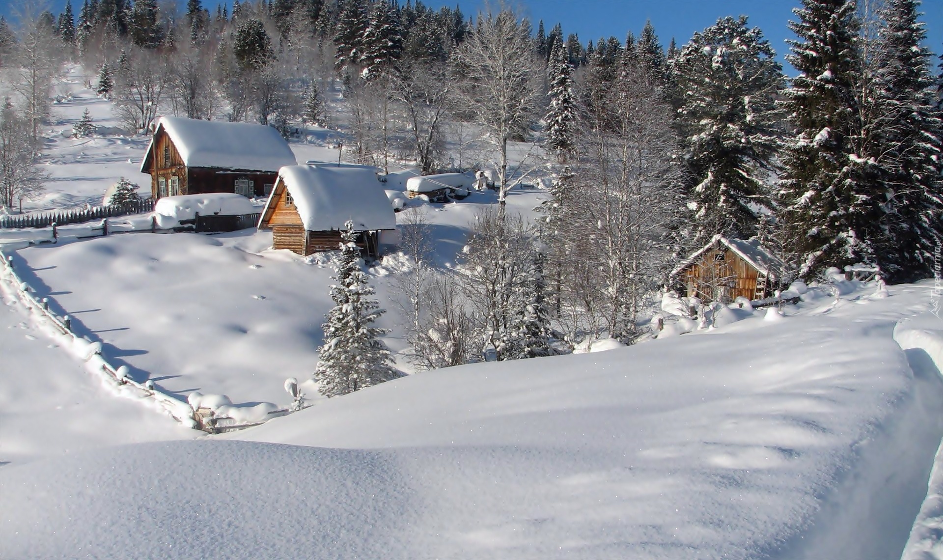 Edytor tapety: Zima, Las, Domy