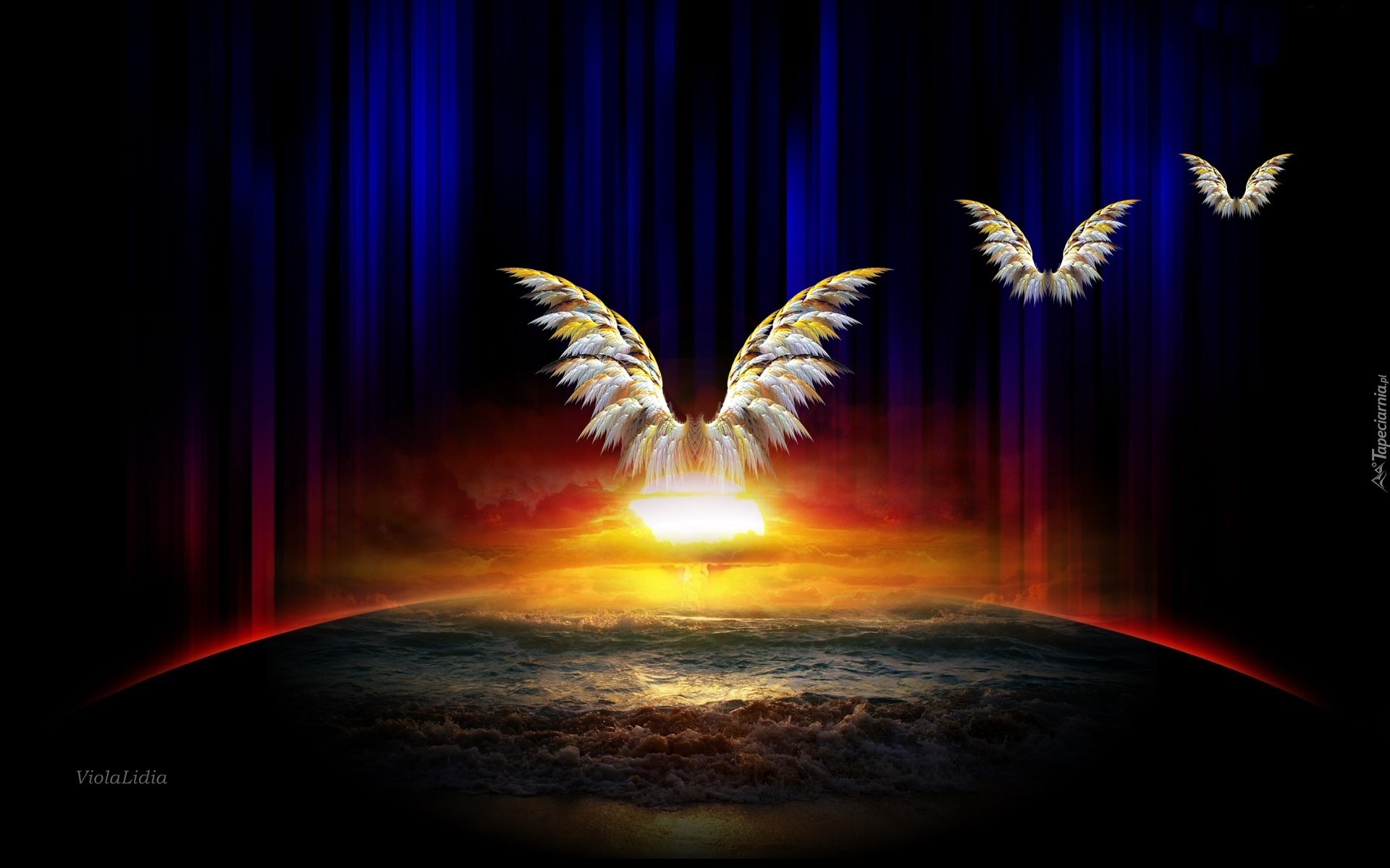 Edytor tapety: Zachód, Słońca, Morze, Skrzydła, Horyzont