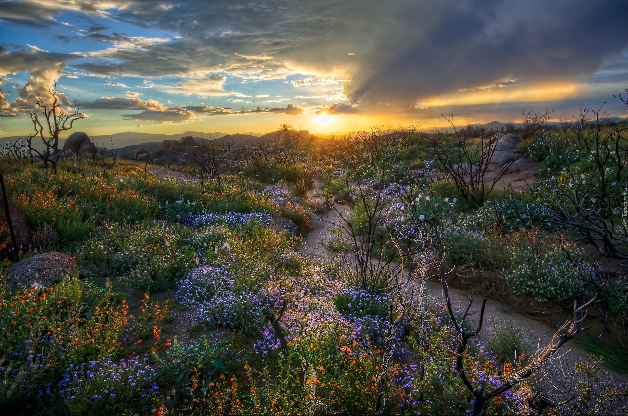 Edytor tapety: Niebo, Chmury, Świt, Wzgórza, Ścieżka