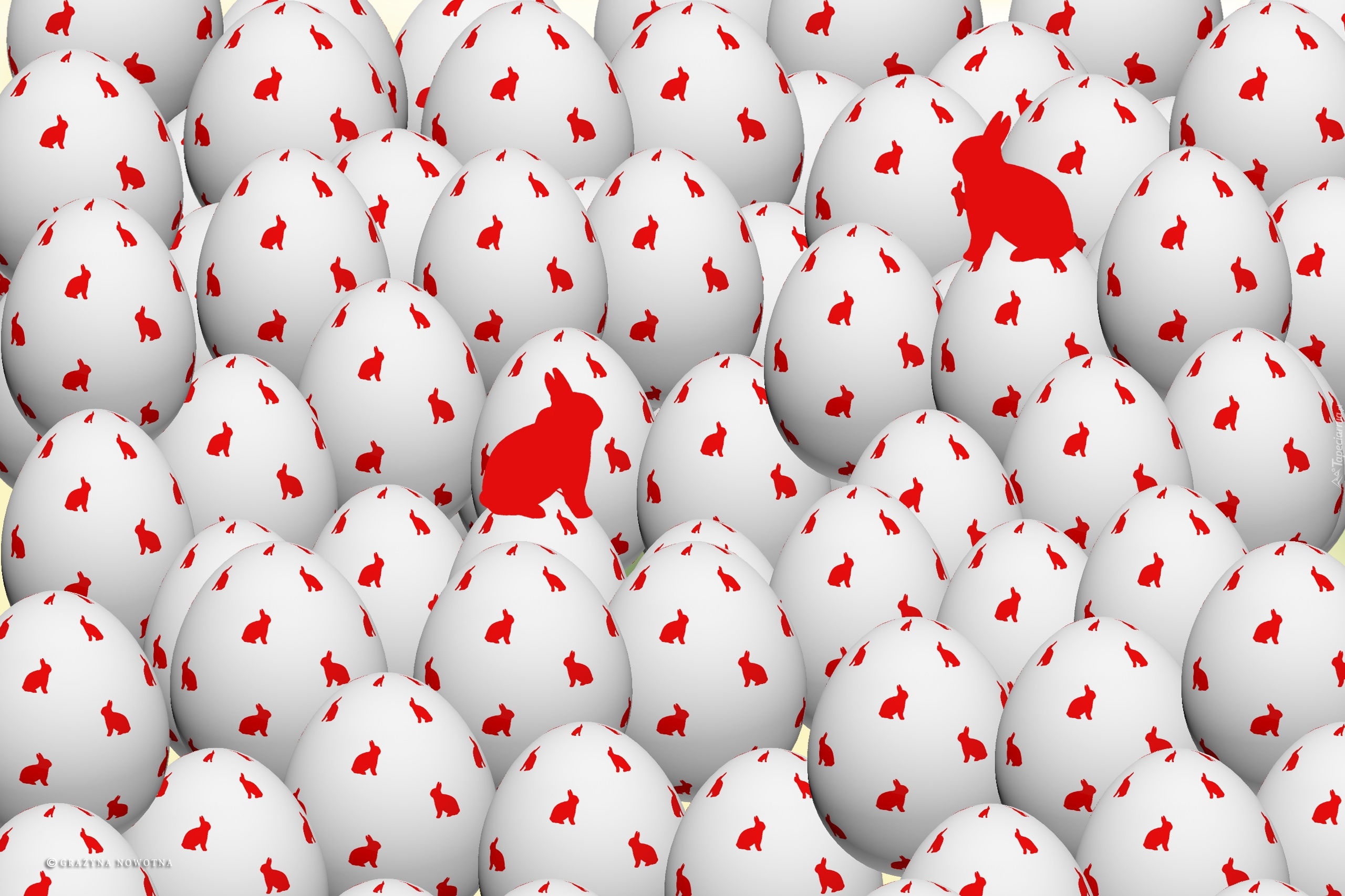 Edytor tapety: Białe, Jajeczka, Czerwone, Zajączki, Święta, Wielkanoc