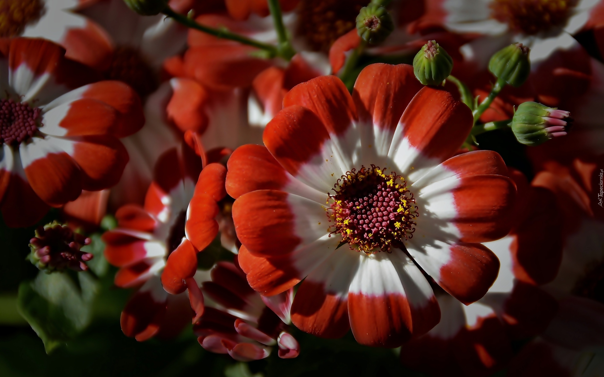 Edytor tapety: Czerwono, Białe, Kwiaty, Płatki, Pąki
