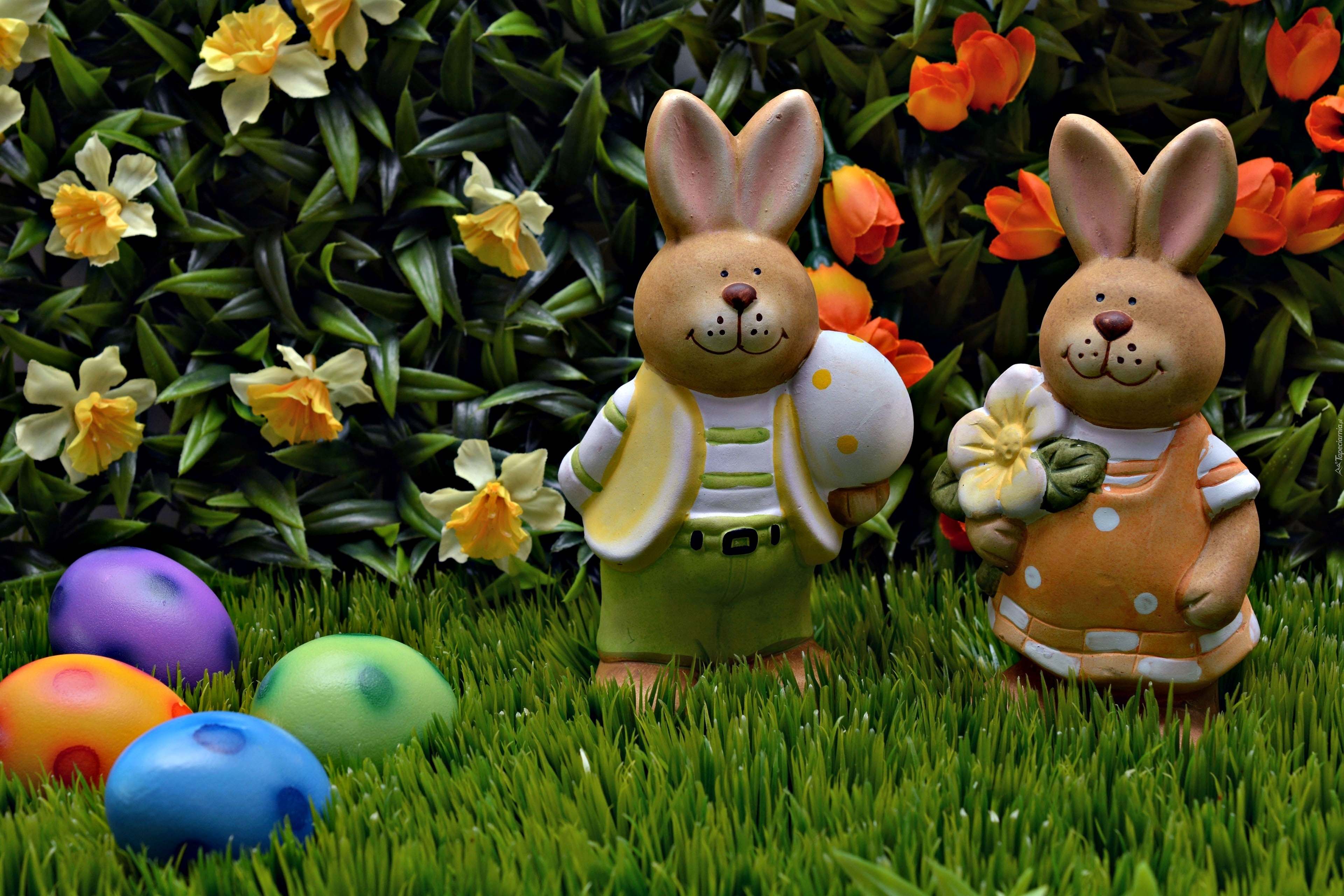 Edytor tapety: Króliczki, Pisanki, Żonkile, Tulipany, Wielkanoc