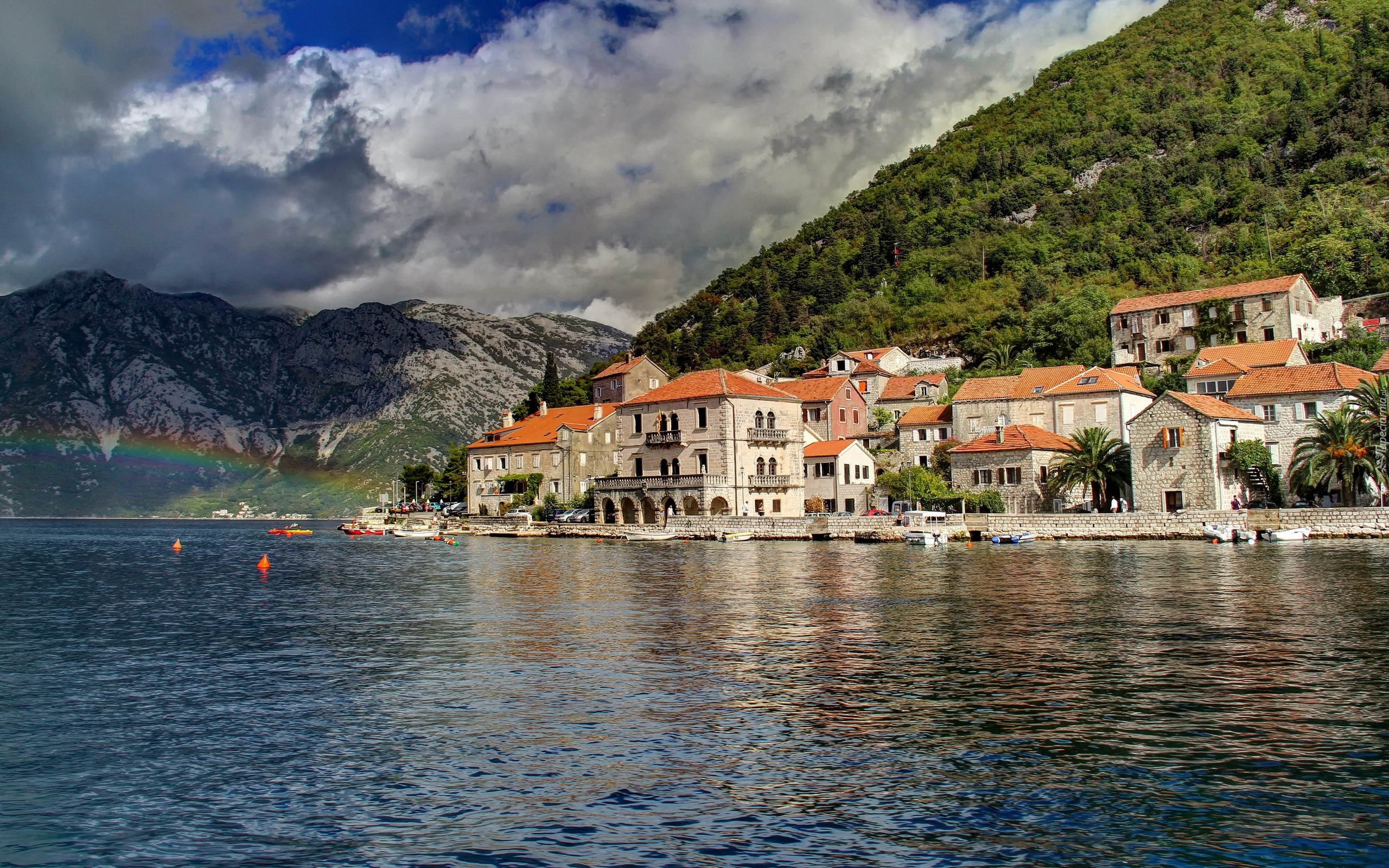 Edytor tapety: Miasto, Perast, Wybrzeże, Czarnogóry, Zatoka, Tęcza