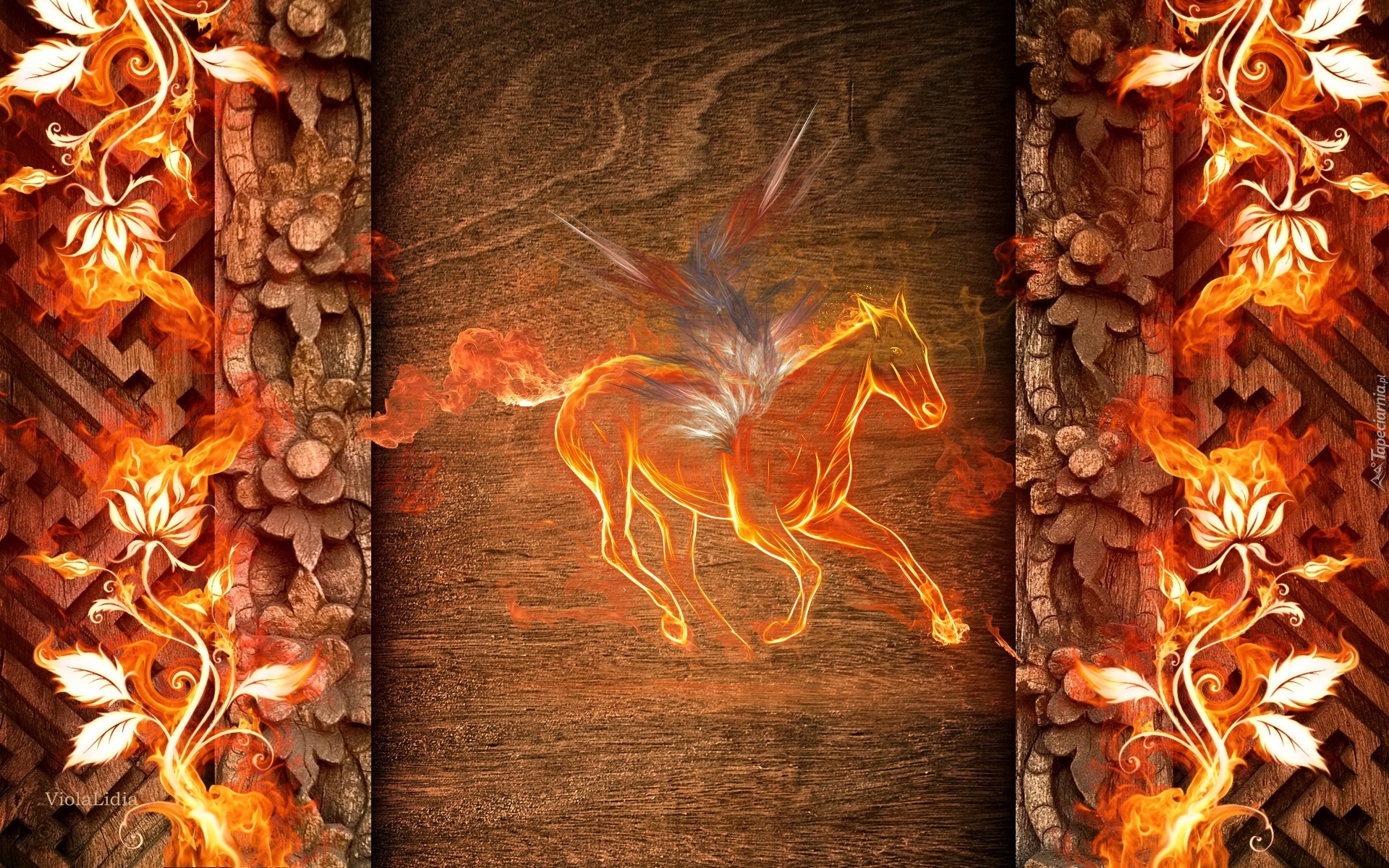 Edytor tapety: Grafika, Ogień, Koń