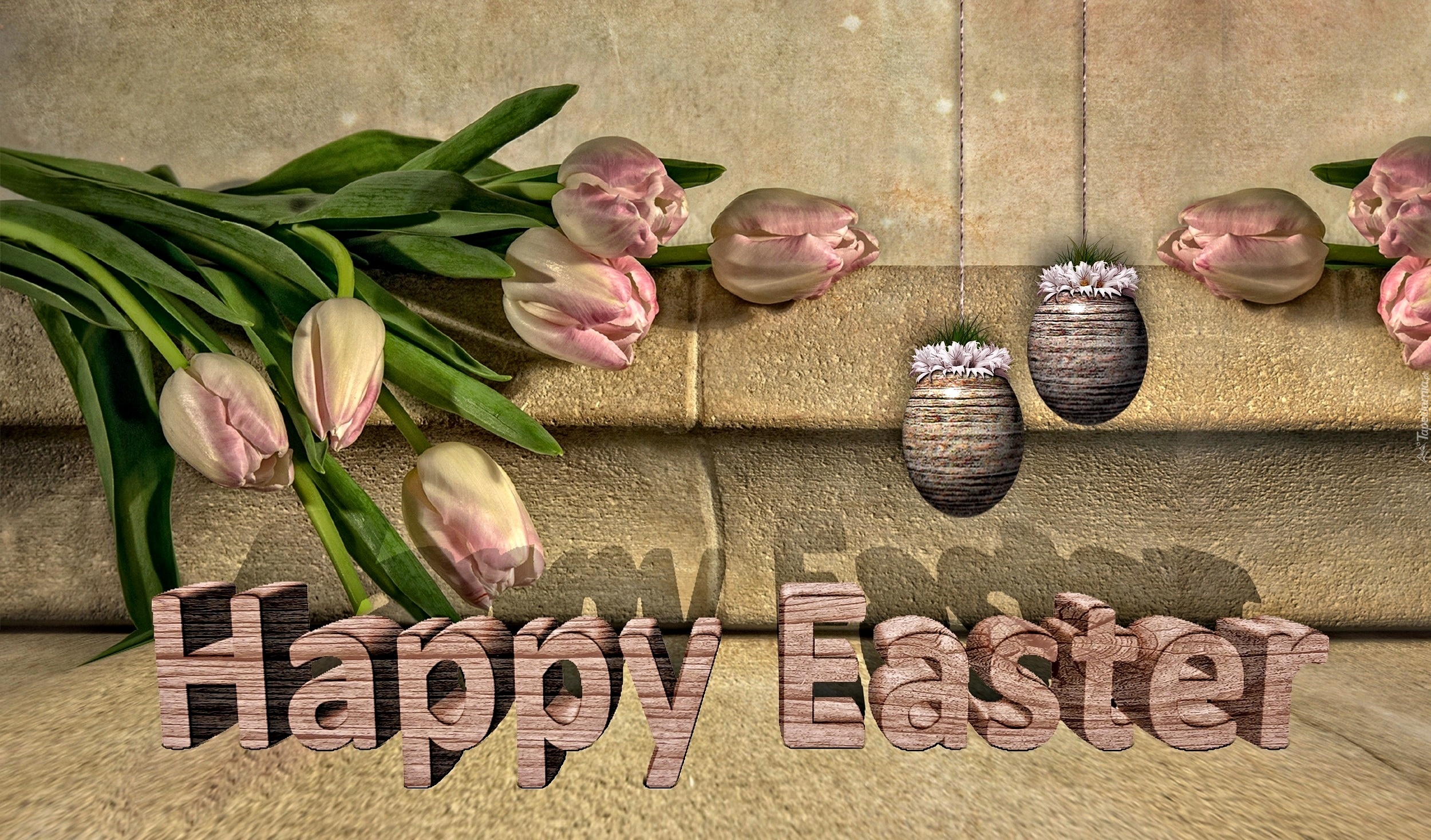 Edytor tapety: Tulipany, Pisanki, Wielkanoc