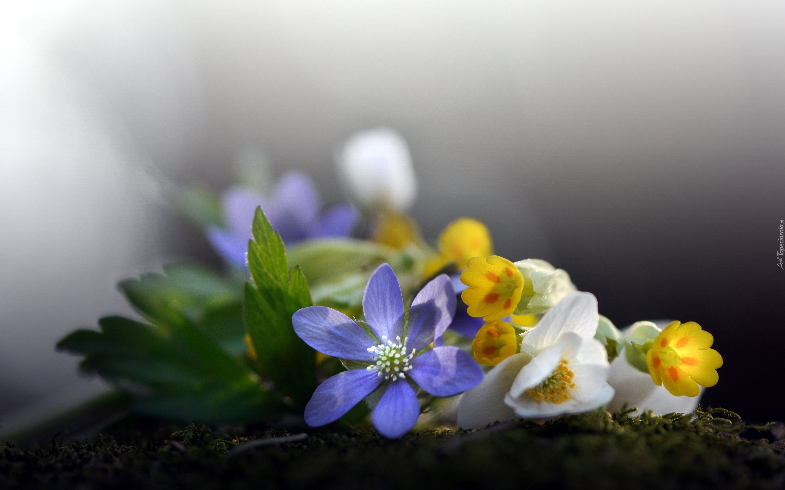 Edytor tapety: Bukiet, Kwiatów, Przylaszczka, Zawilec, Pierwiosnek