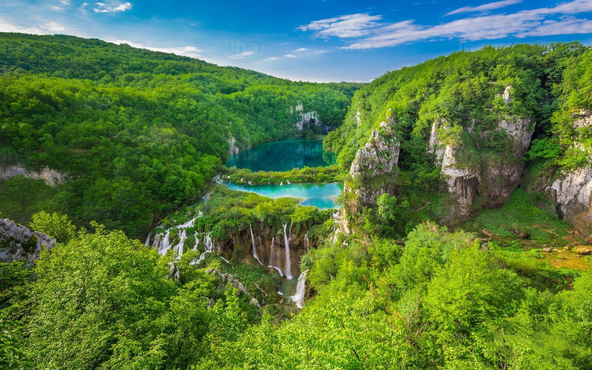 Edytor tapety: Góry, Jeziorko, Wodospad, Park Narodowy Plitvice