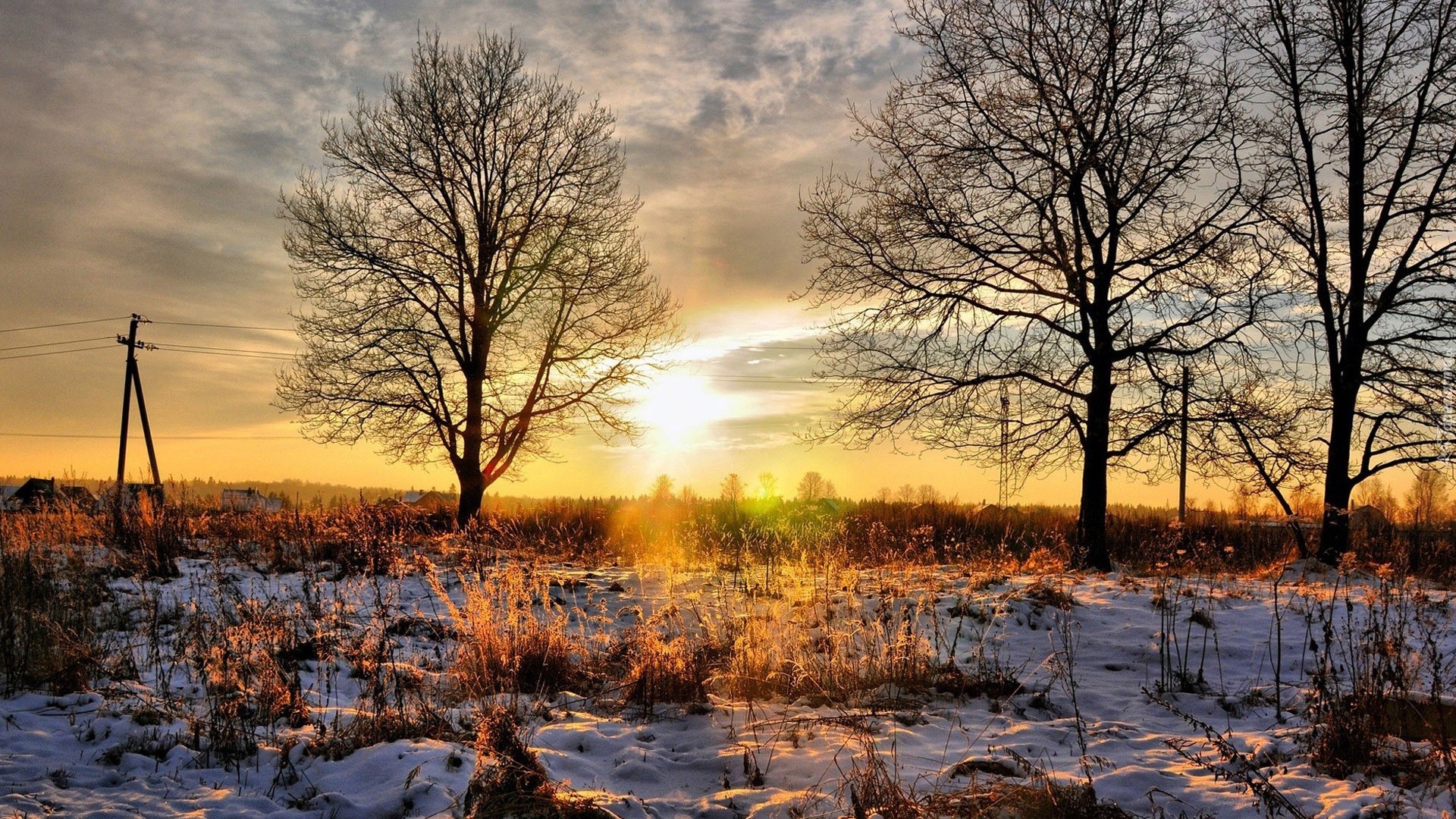 Edytor tapety: Zima, Wschód słońca, Drzewa