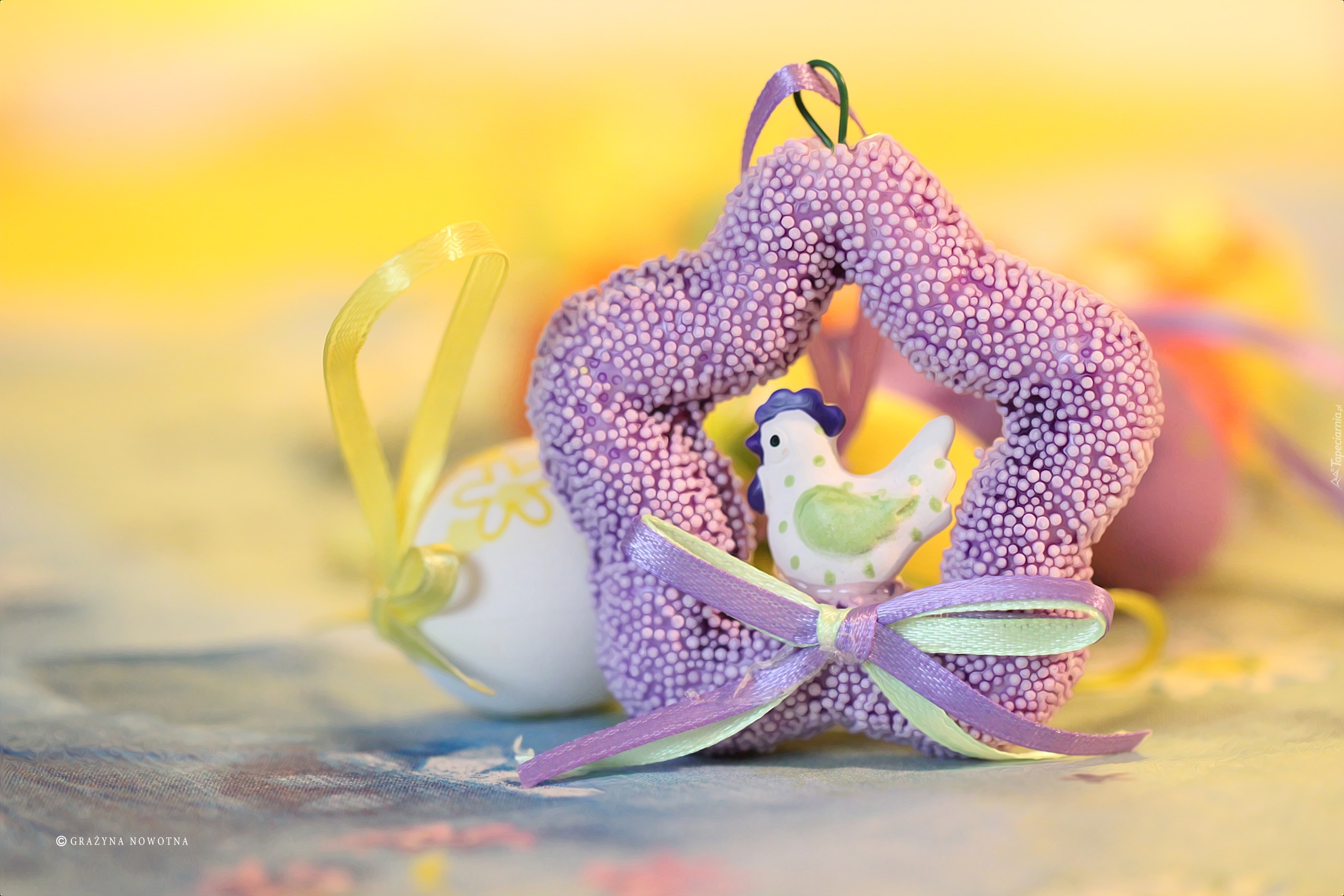 Edytor tapety: Ozdoba, Wielkanocna, Kurczak, Kokardka, Święta