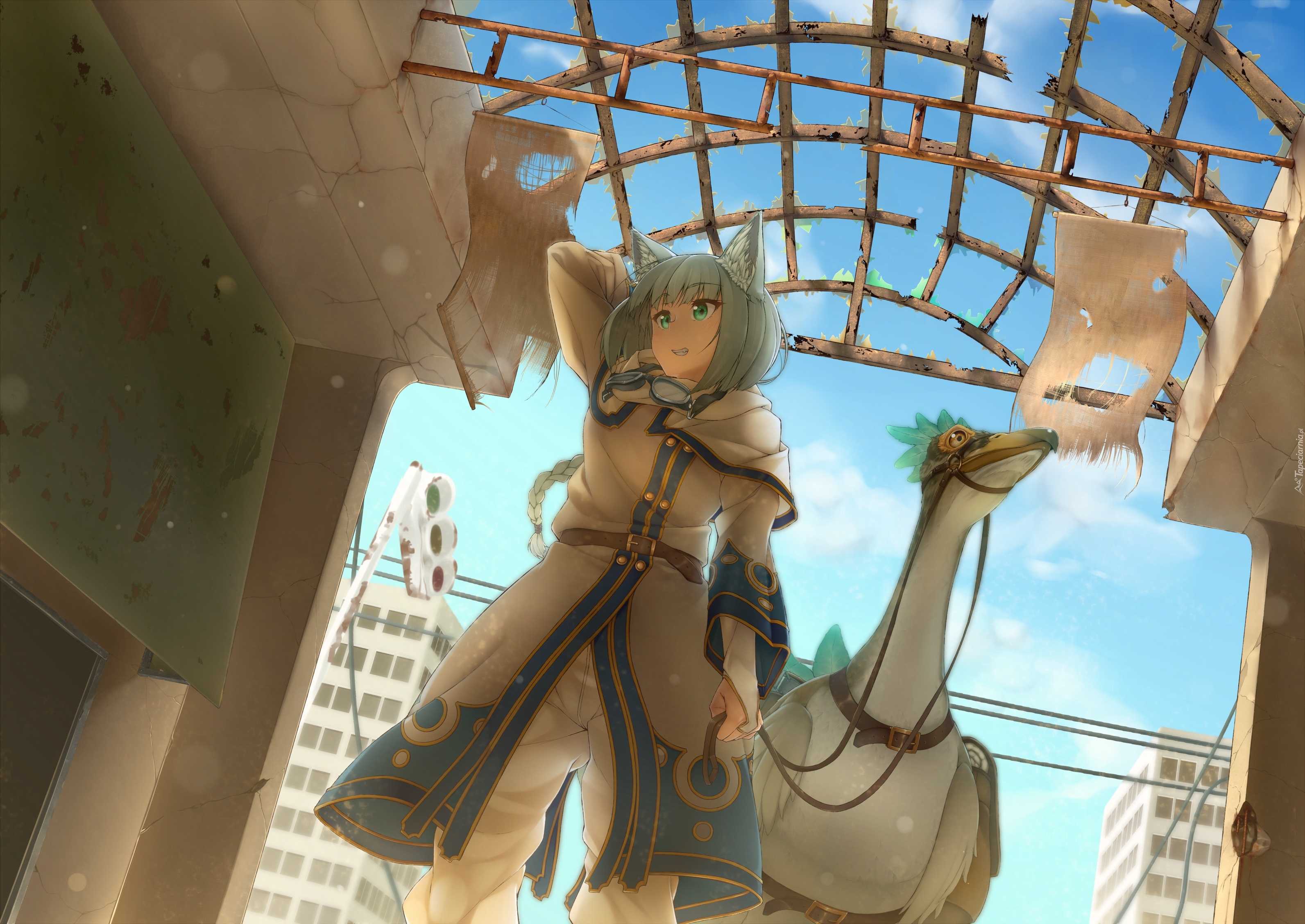 Edytor tapety: Dziewczyna, Miasto, Anime