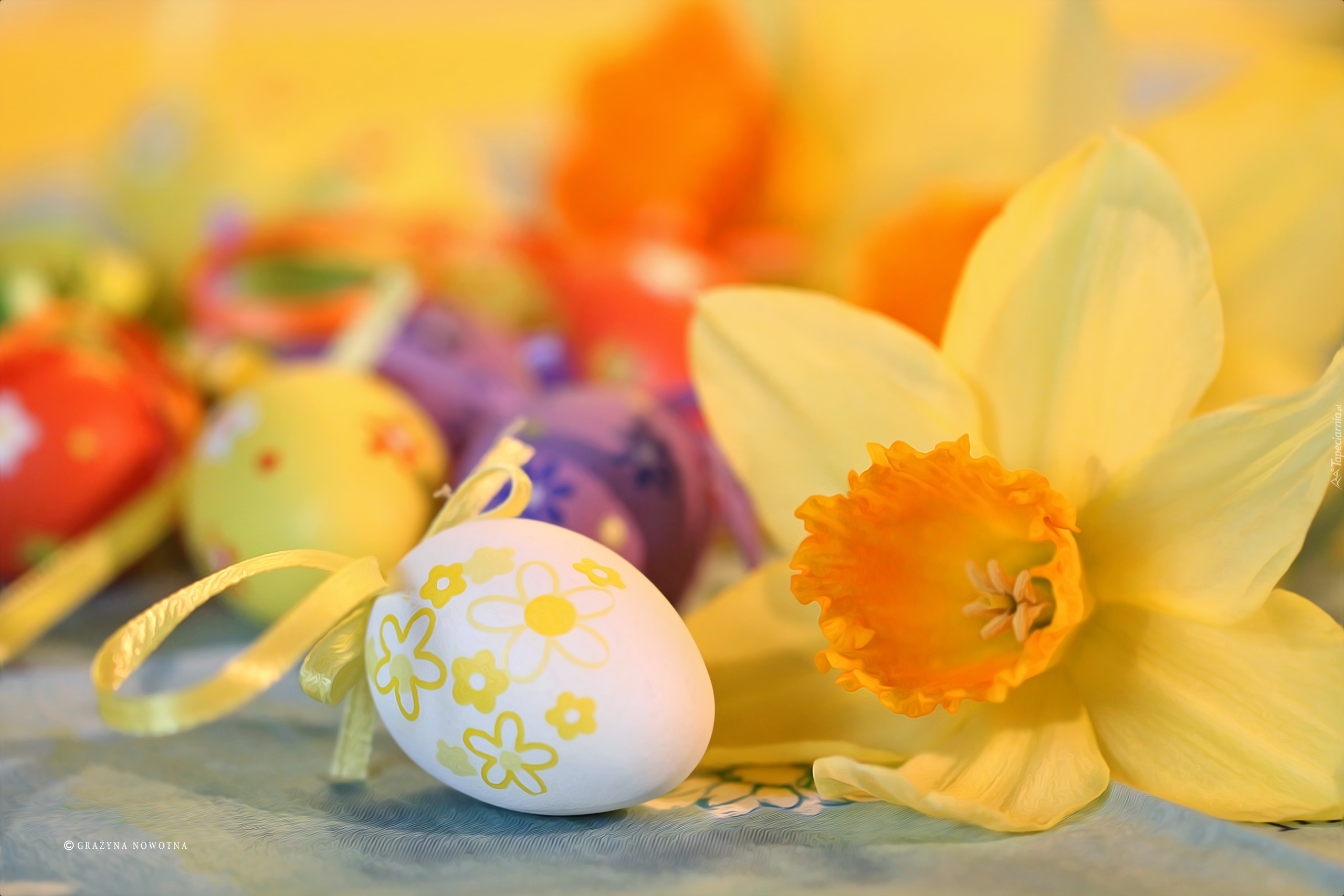 Edytor tapety: Jajeczka, Ozdoby, Żonkil, Święta, Wielkanoc