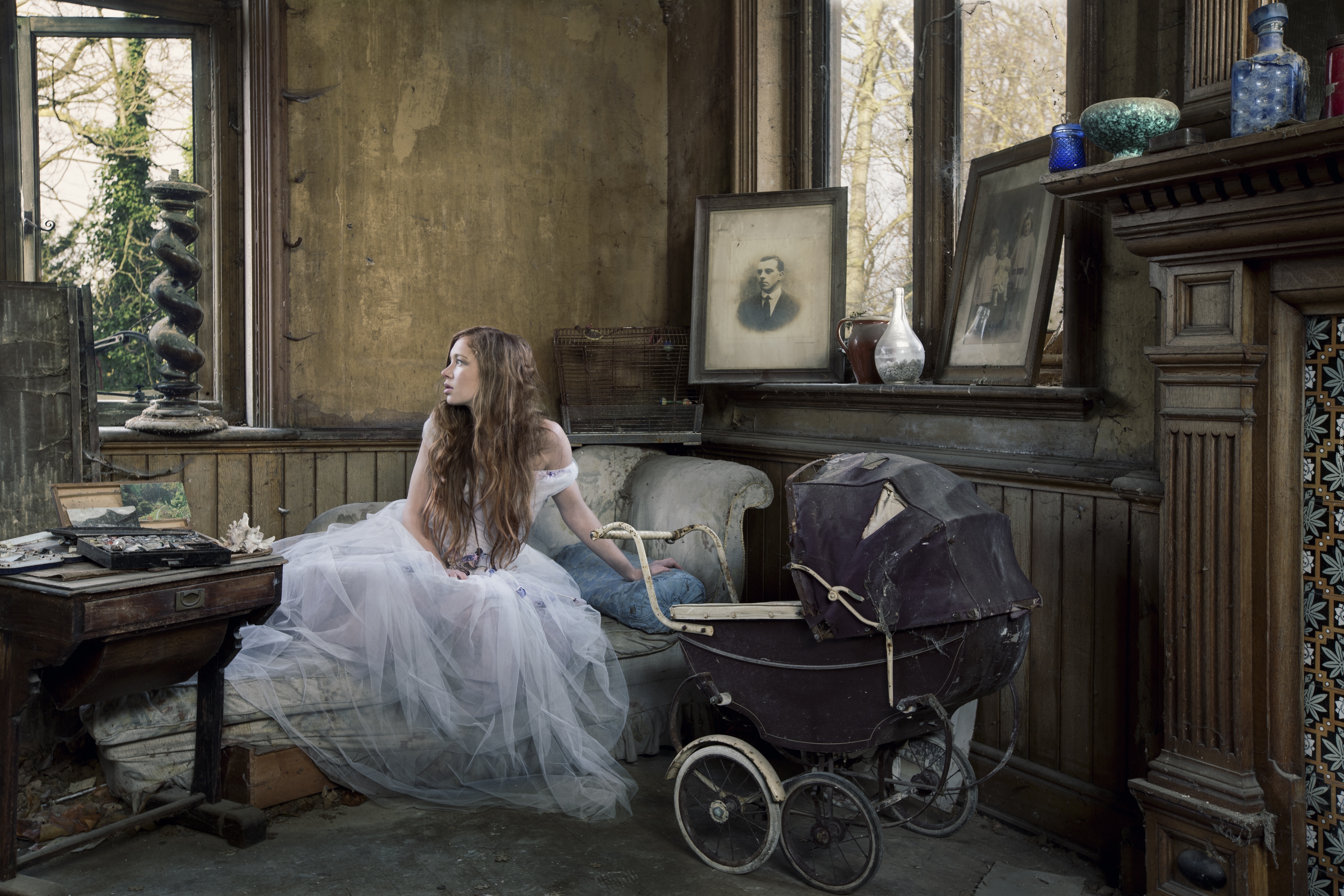 Edytor tapety: Kobieta, Wózek