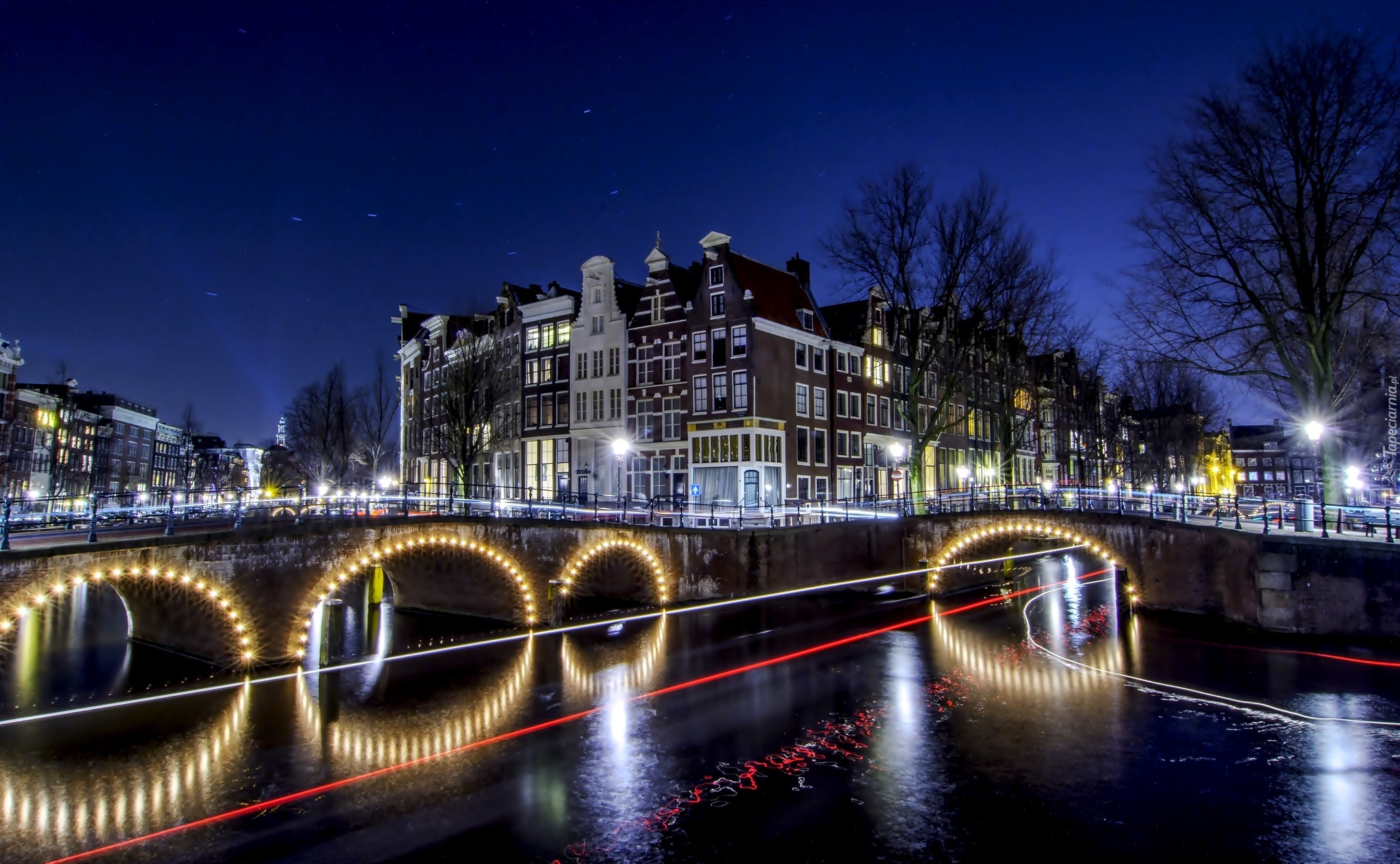 Edytor tapety: Amsterdam, Kanał, Most, Budynki