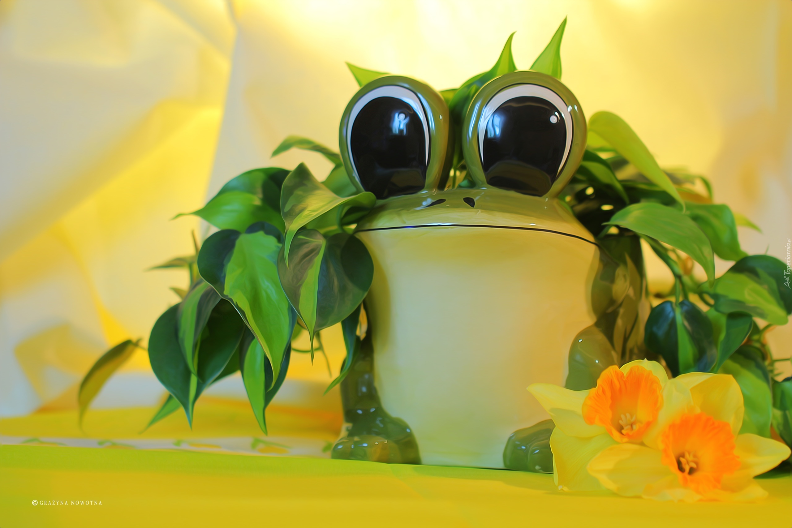 Edytor tapety: Roślina, Kwiaty, Żonkile, Żaba, Donica